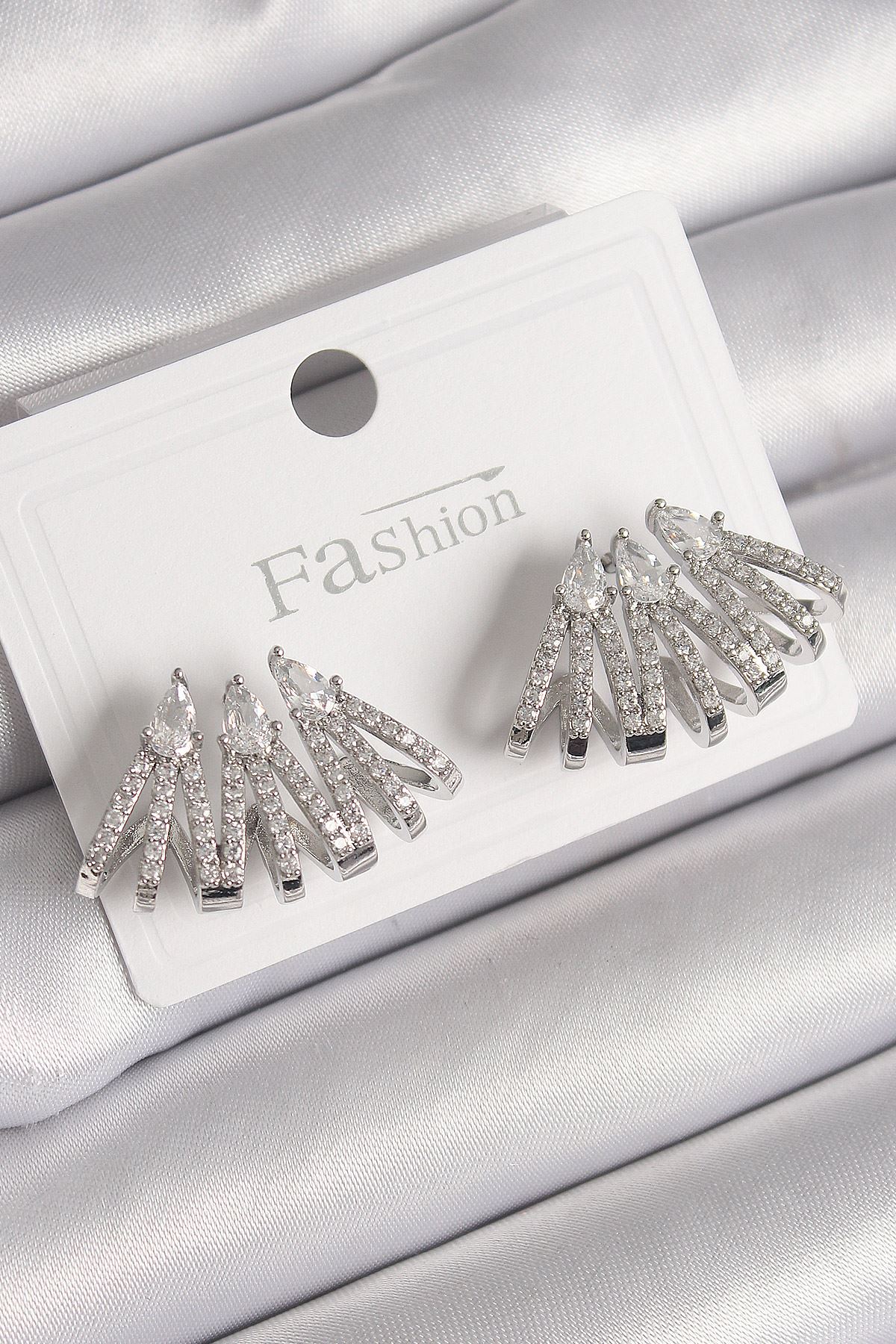 YRTCL Pirinç Gümüş Renk Zirkon Taşlı Kadın Küpe