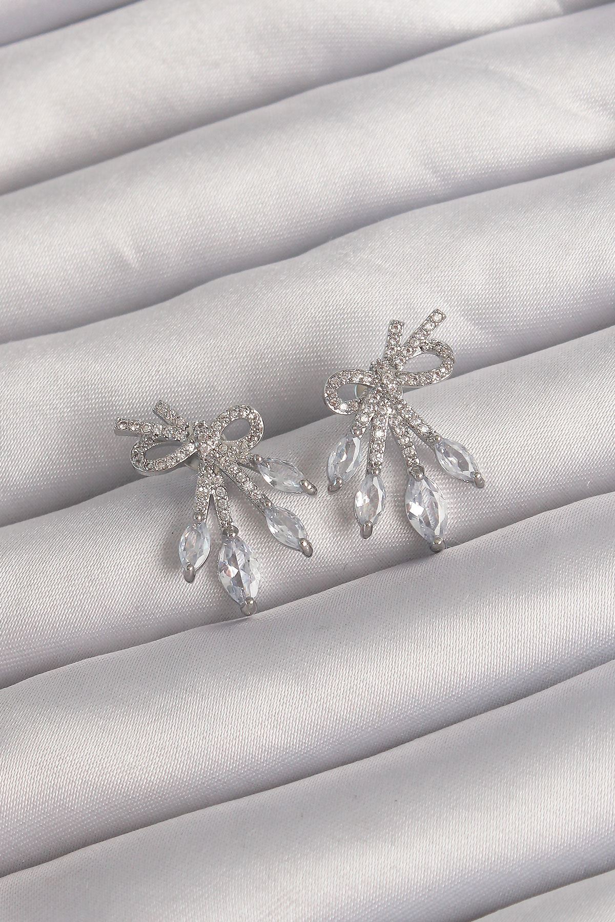 YRTCL Pirinç Gümüş Renk Kelebek Model Sallantı Damla Zirkon Taşlı Kadın Küpe