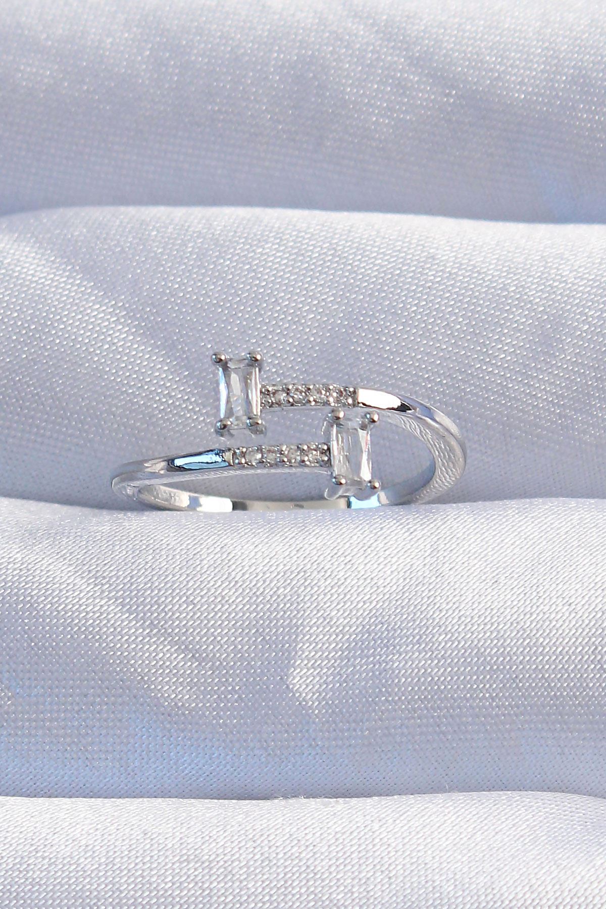 YRTCL Pirinç Gümüş Renk Zirkon Taşlı Geometrik Ayarlanabilir Yüzük