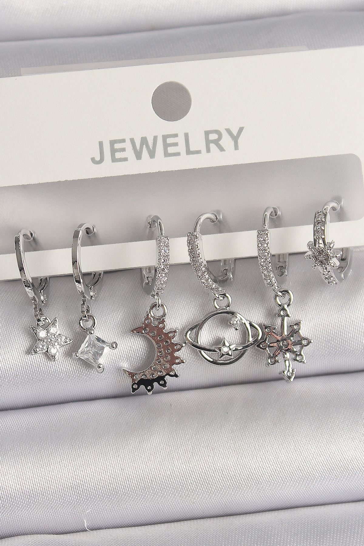 YRTCL Pirinç Gümüş Renk Zirkon Taşlı 3'Lü Sallantı Yıldız Model Kadın Küpe