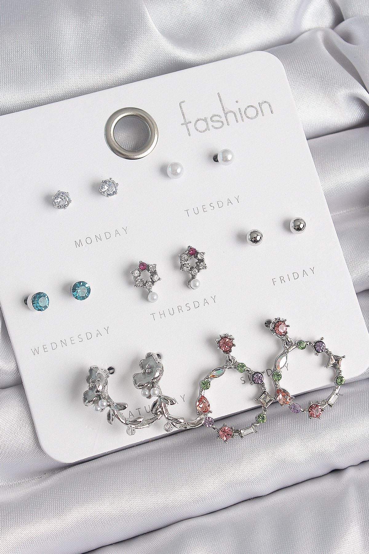 YRTCL Pirinç Gümüş Renk Zirkon Taşlı Gül Figür Halka Model 7 Çift Kadın Küpe Seti