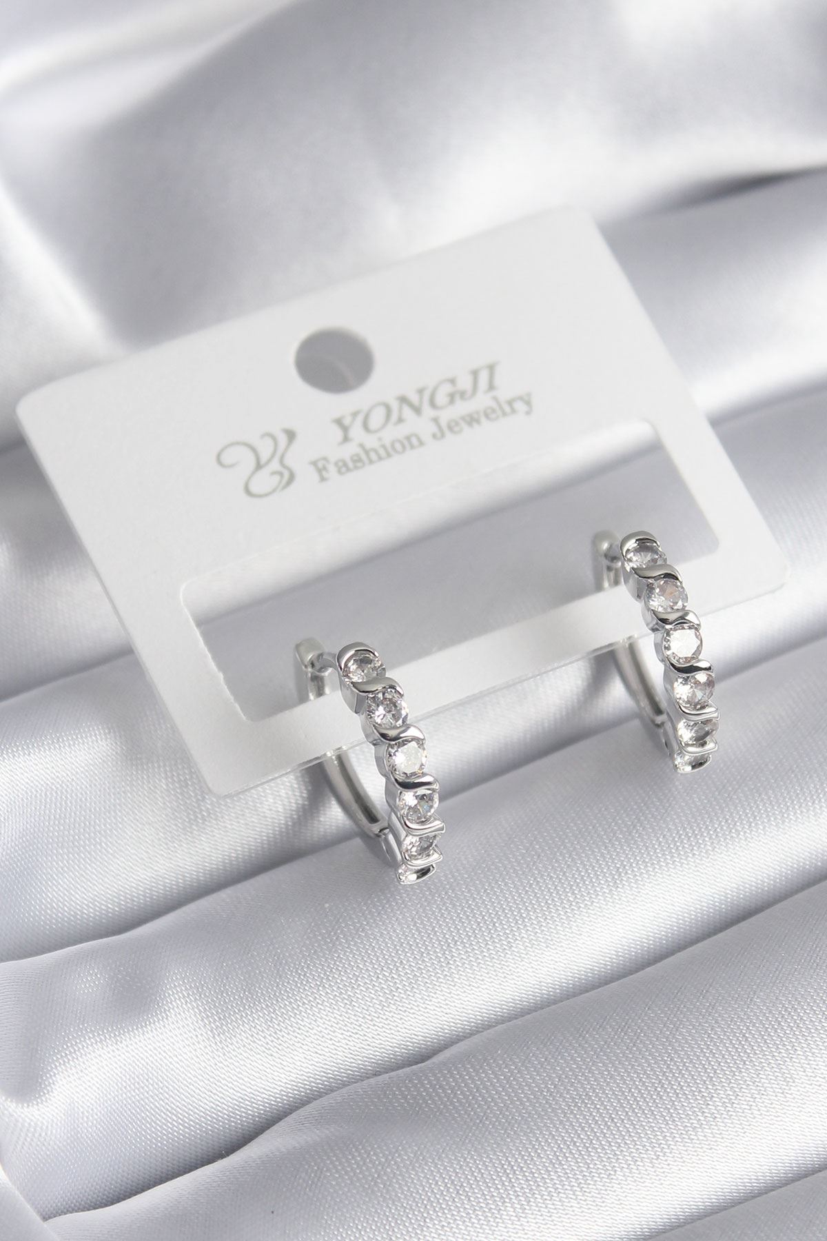YRTCL Pirinç Gümüş Renk Zirkon Taşlı Halka Model Kadın Küpe