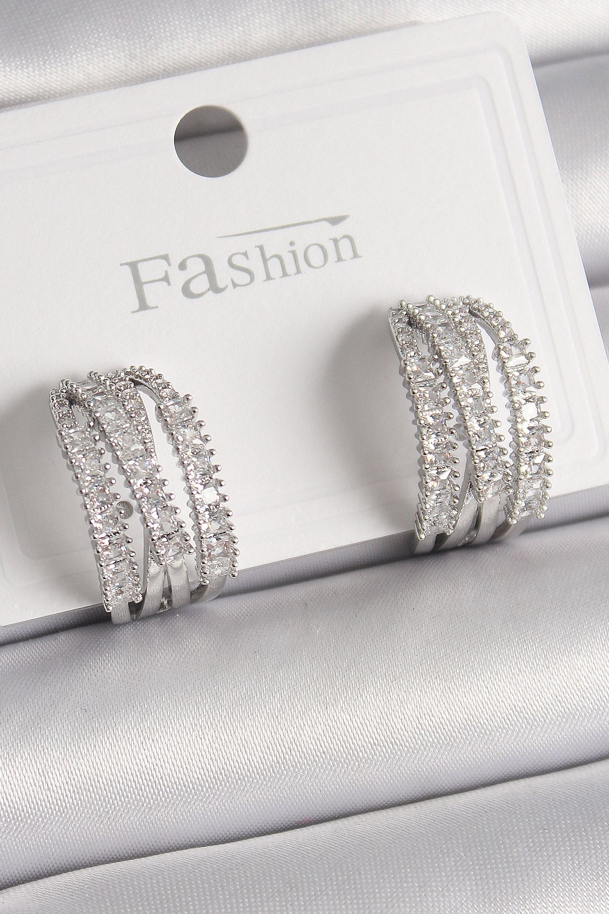 YRTCL Pirinç Gümüş Renk Zirkon Taşlı Halka Model Kadın Küpe