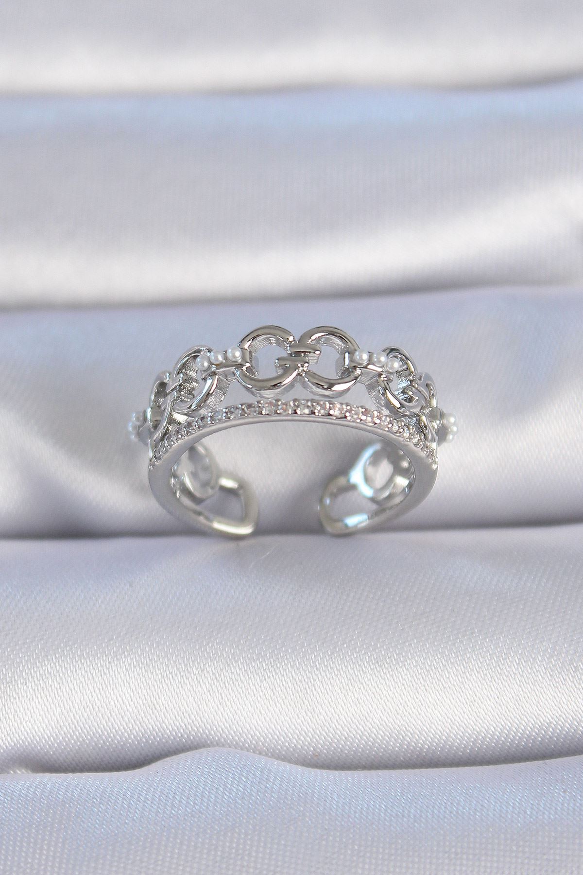 YRTCL Pirinç Gümüş Renk Zirkon Taşlı İnci Detay VIP Seri Kadın Yüzük