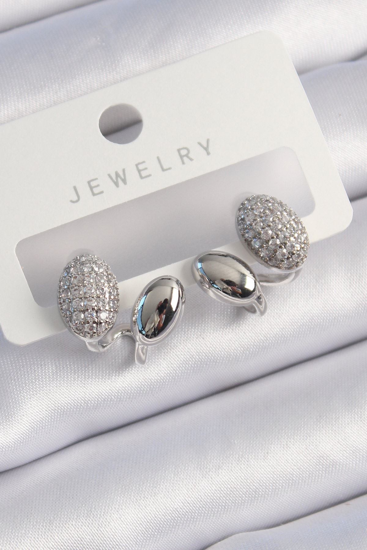 YRTCL Pirinç Gümüş Renk Zirkon Taşlı Kadın Küpe