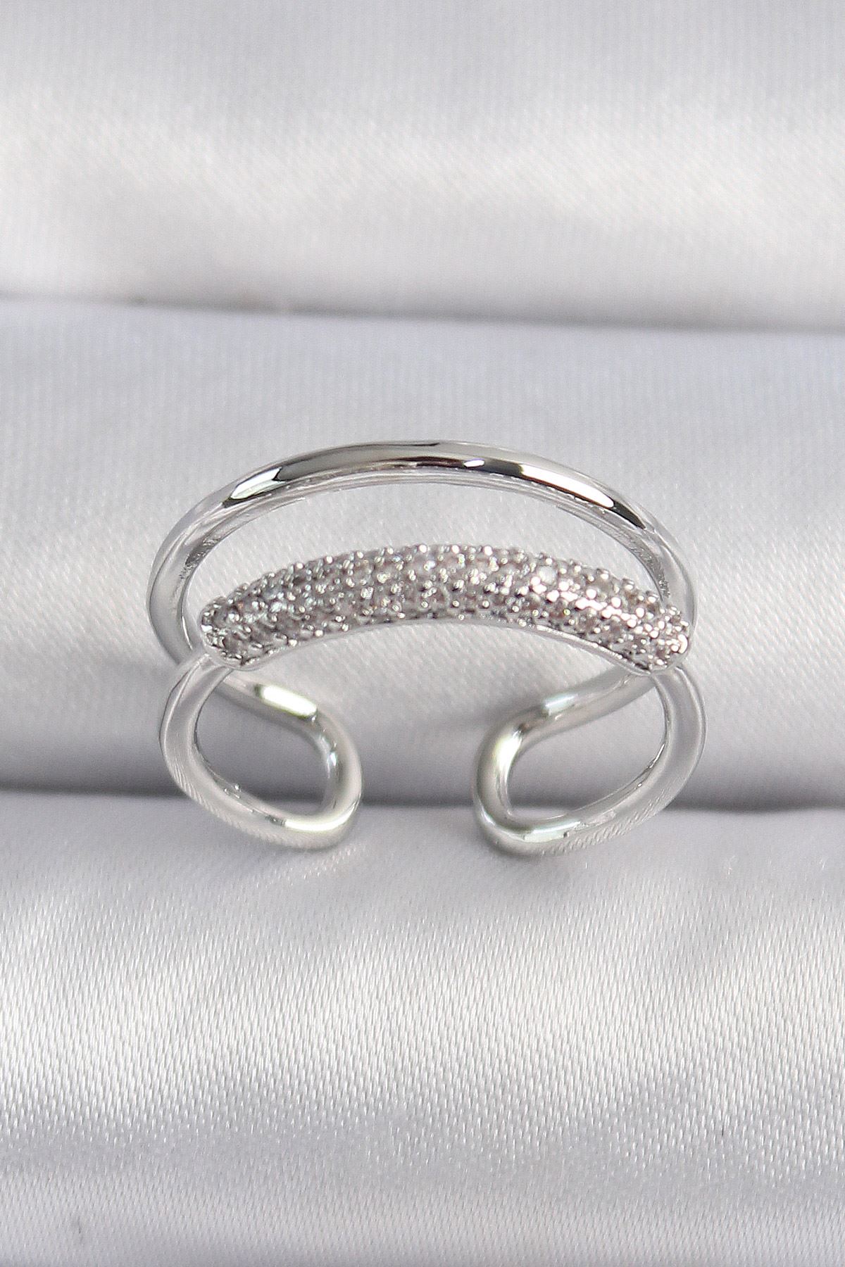 YRTCL Pirinç Gümüş Renk Zirkon Taşlı Kadın Yüzük