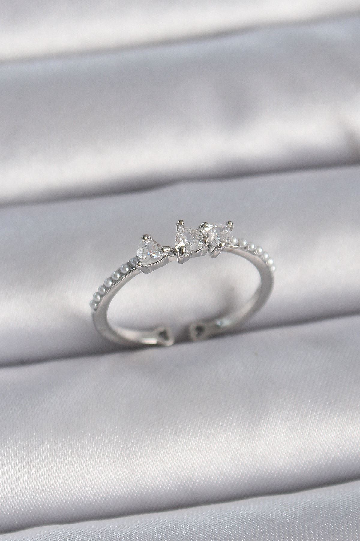 YRTCL Pirinç Gümüş Renk Zirkon Taşlı Kalp İnci Detay Ayarlanabilir Model Kadın Yüzük