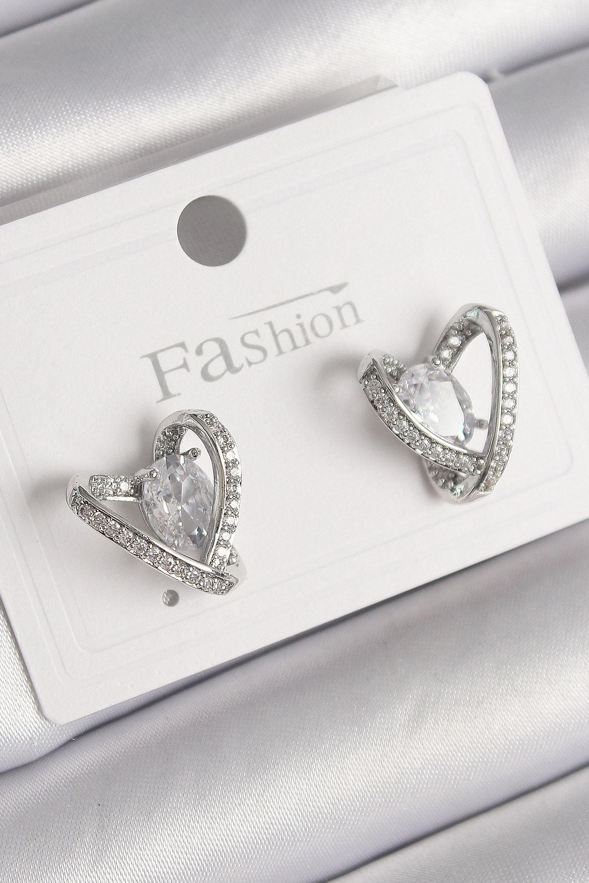 YRTCL Pirinç Gümüş Renk Zirkon Taşlı Kalp Model Kadın Küpe