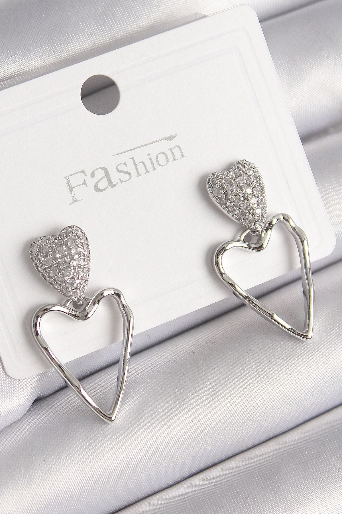 YRTCL Pirinç Gümüş Renk Zirkon Taşlı Kalp Model Kadın Küpe