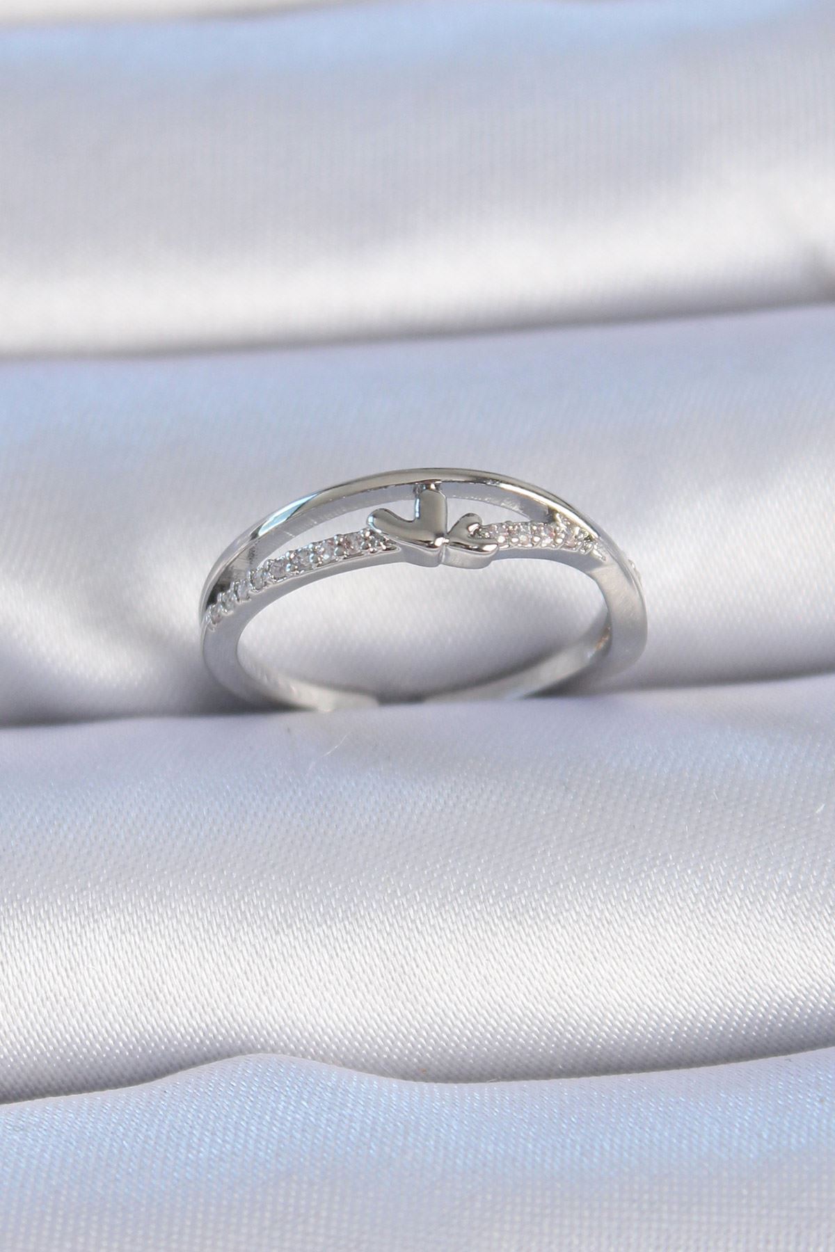 YRTCL Pirinç Gümüş Renk Zirkon Taş Detay Kalp Model Kadın Yüzük