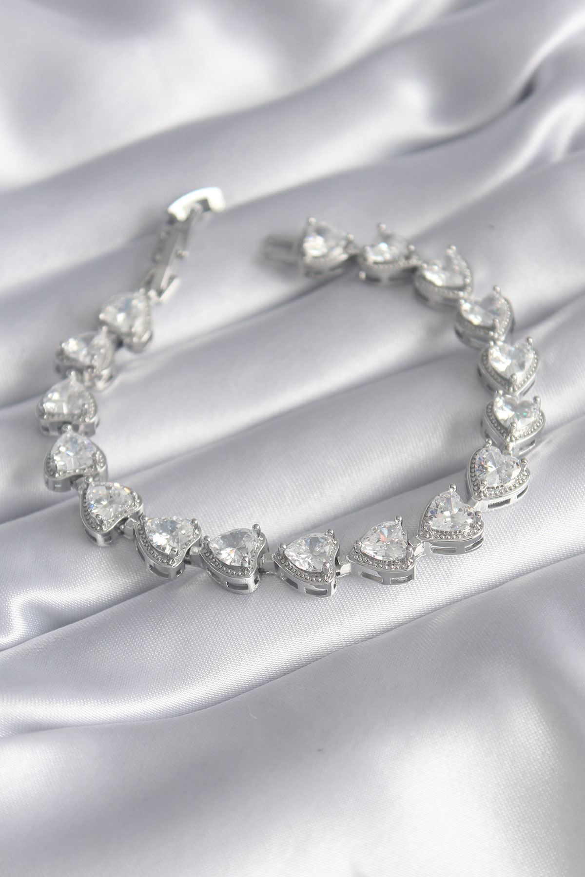 YRTCL Pirinç Gümüş Renk Zirkon Taşlı Kalp Model VIP Seri Kadın Bileklik