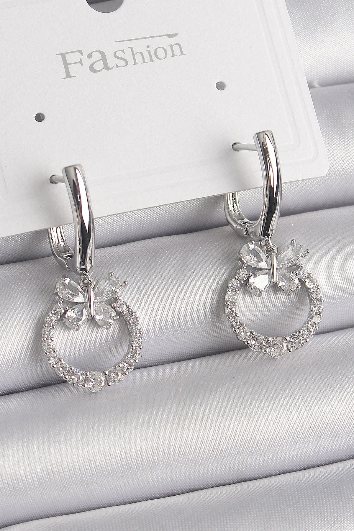 YRTCL Pirinç Gümüş Renk Zirkon Taşlı Kelebek Figür Sallantı Detay Kadın Küpe