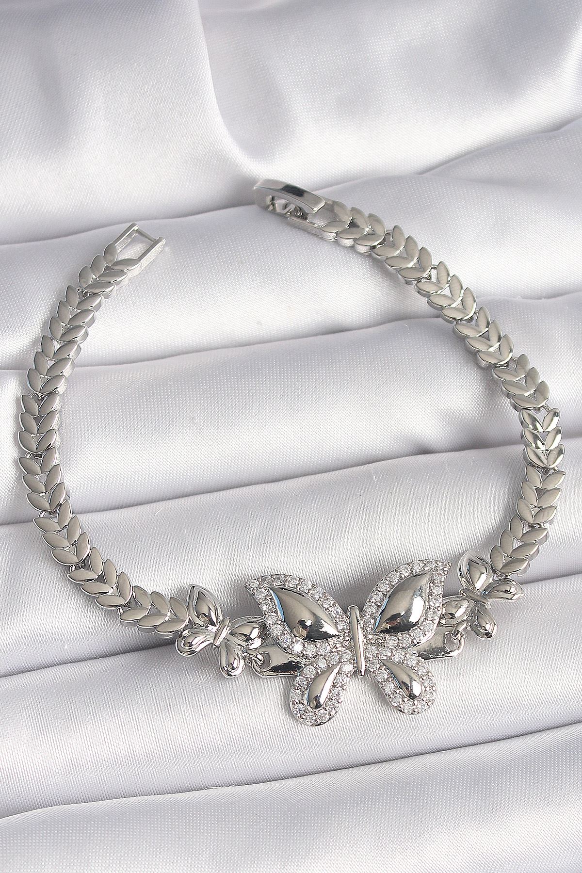 YRTCL Pirinç Gümüş Renk Zirkon Taşlı Kelebek Model Kadın Bileklik