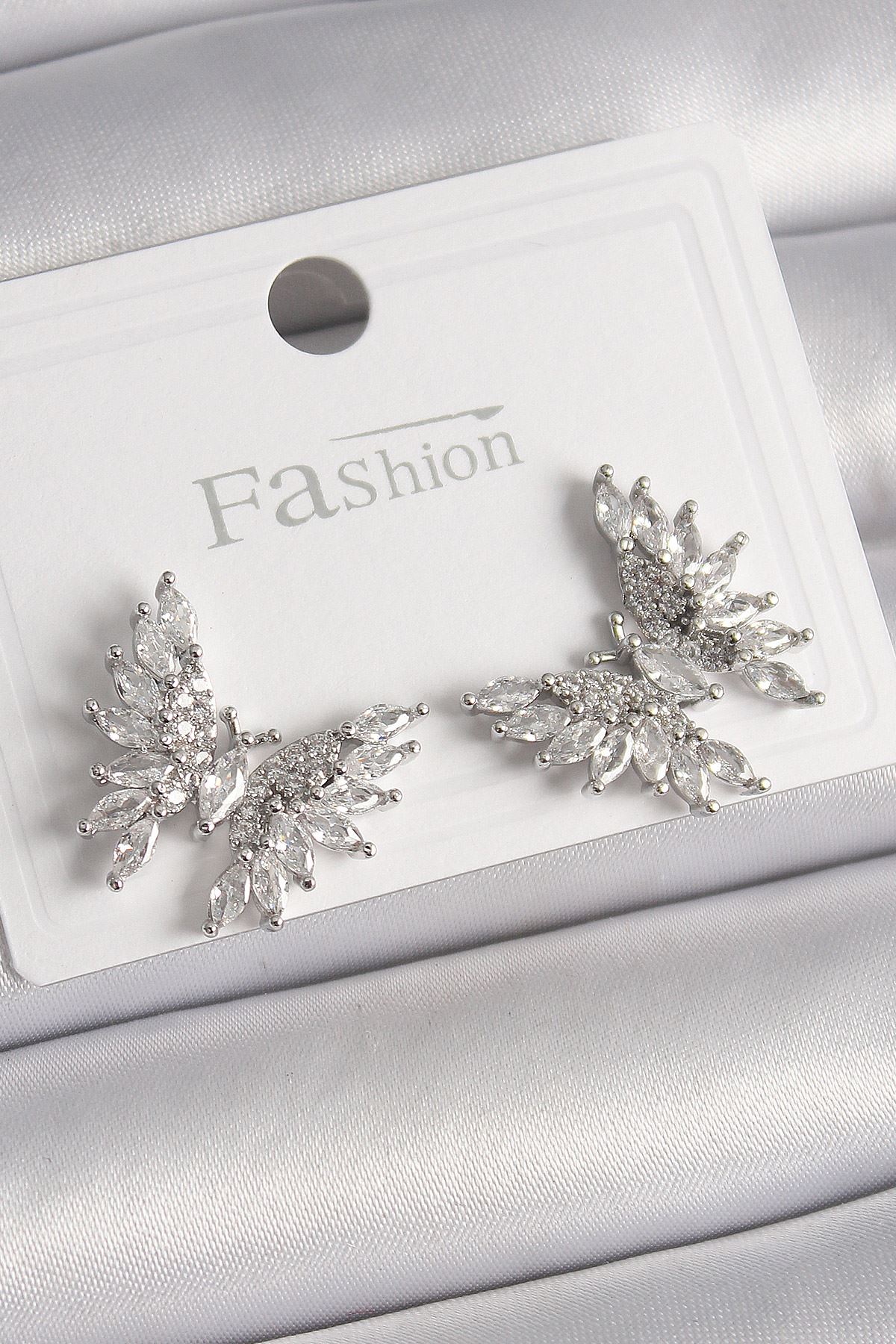 YRTCL Pirinç Gümüş Renk Zirkon Taşlı Kelebek Model Kadın Küpe