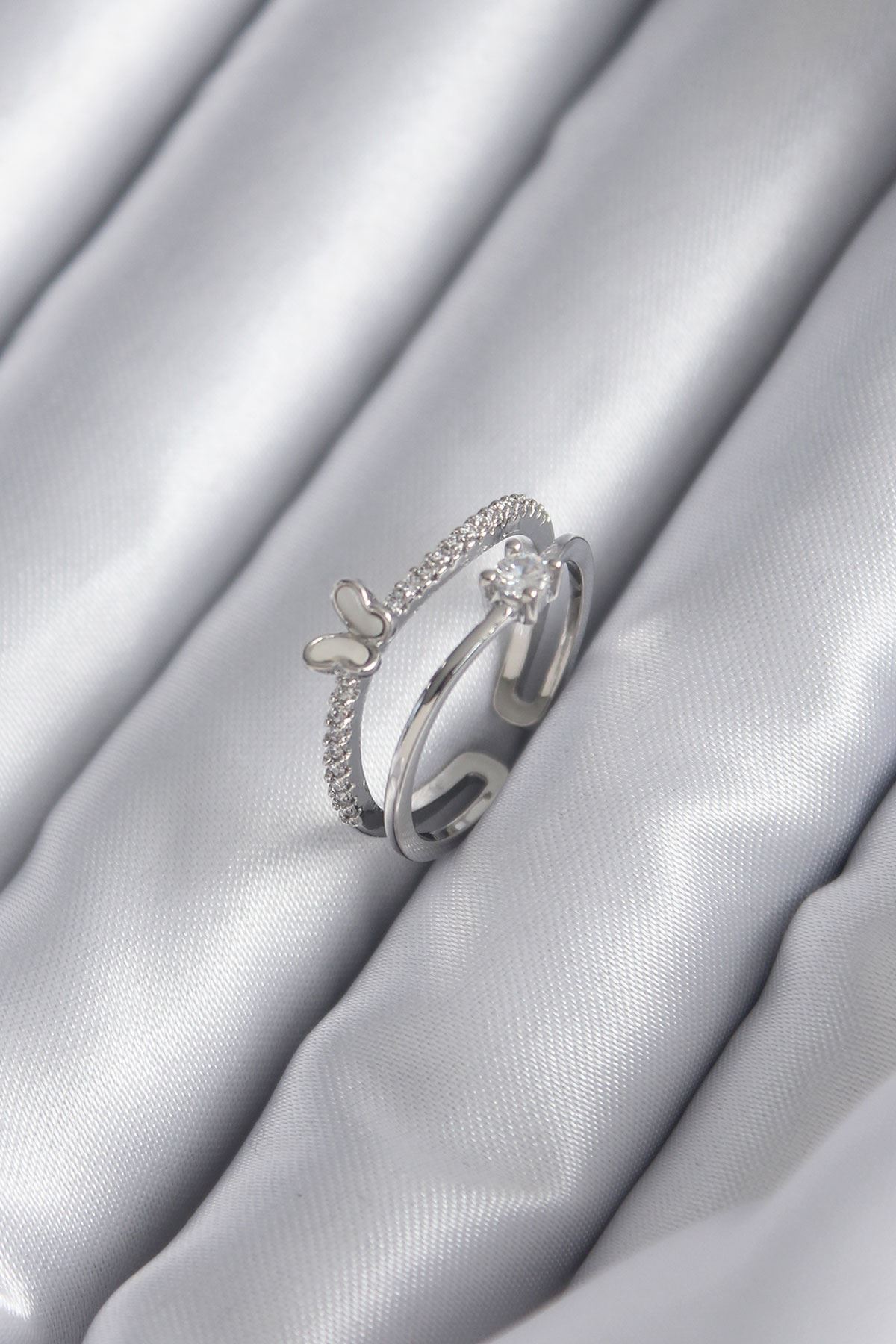 YRTCL Pirinç Gümüş Renk Zirkon Taşlı Beyaz Mineli Kelebek Model Kadın Yüzük