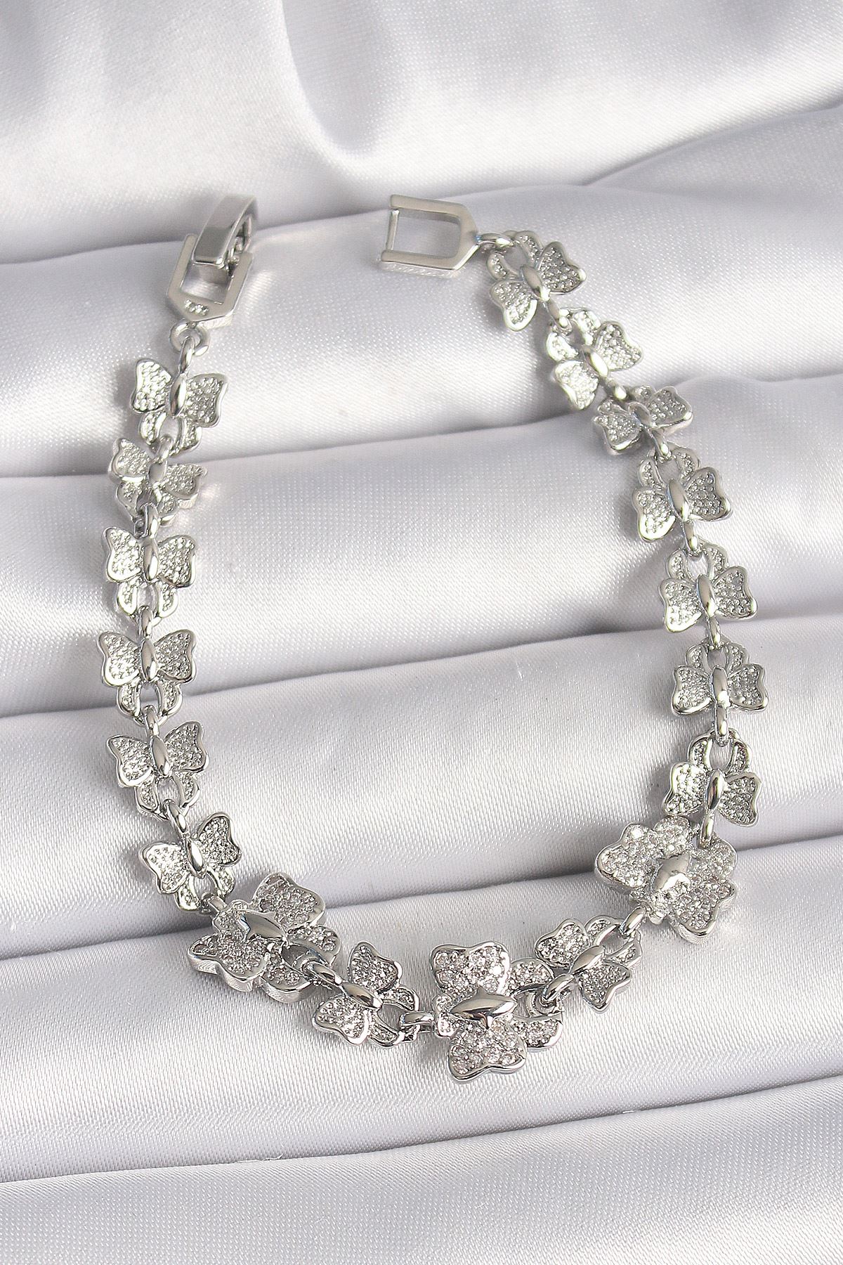 YRTCL Pirinç Gümüş Renk Zirkon Taşlı Kelebek Model Zincir Kadın Bileklik