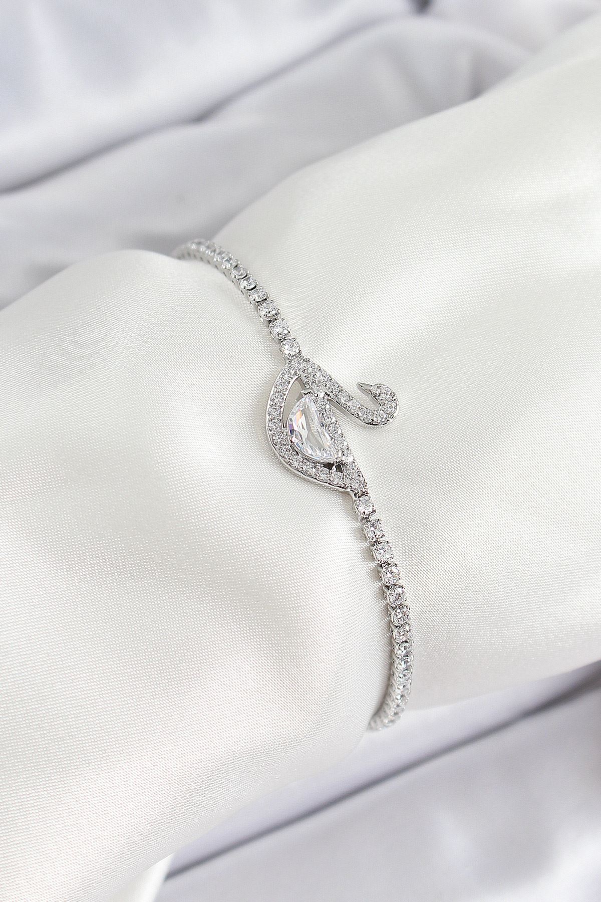 YRTCL Pirinç Gümüş Renk Zirkon Taşlı Kuğu Model Kadın Bileklik