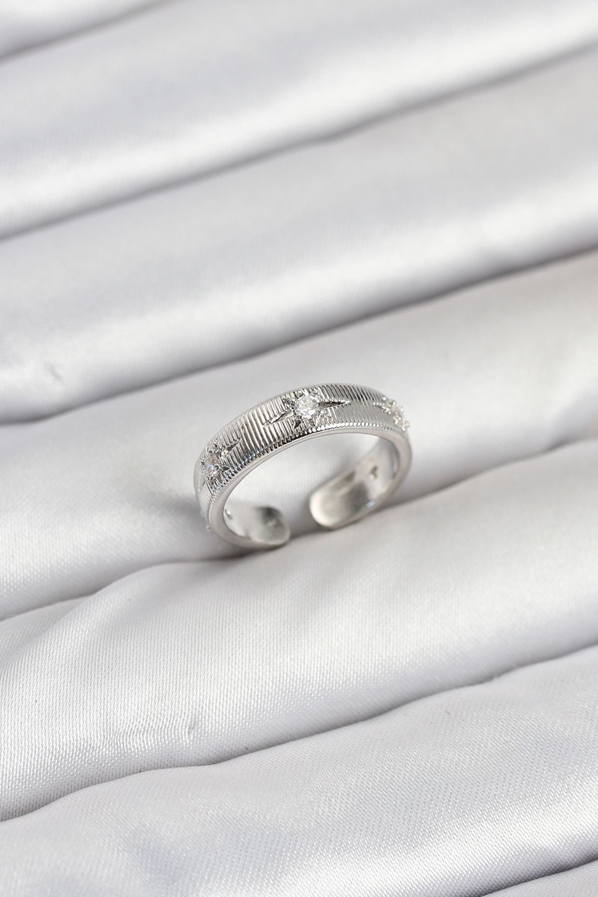 YRTCL Pirinç Gümüş Renk Zirkon Taşlı Kutup Yıldızı Model Kadın Yüzük