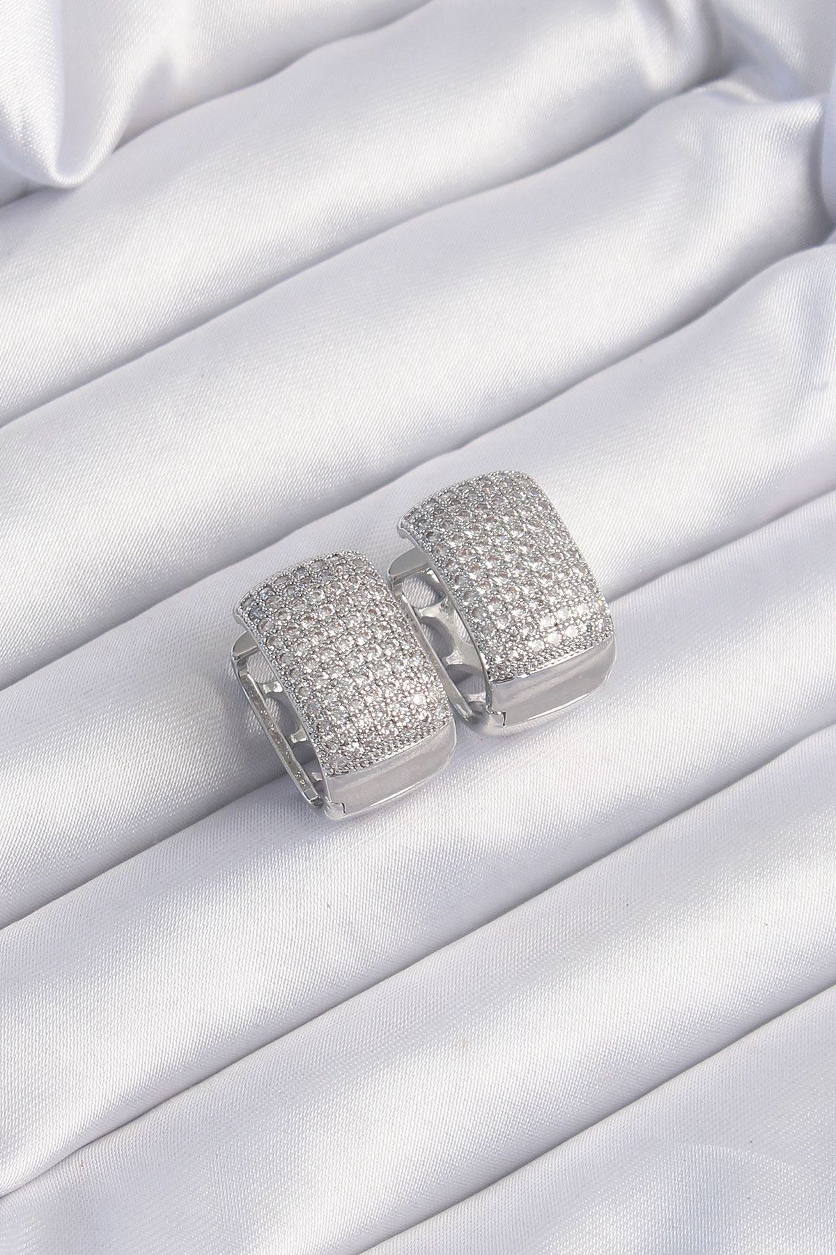 YRTCL Pirinç Gümüş Renk Zirkon Taşlı Minimal Halka Küpe