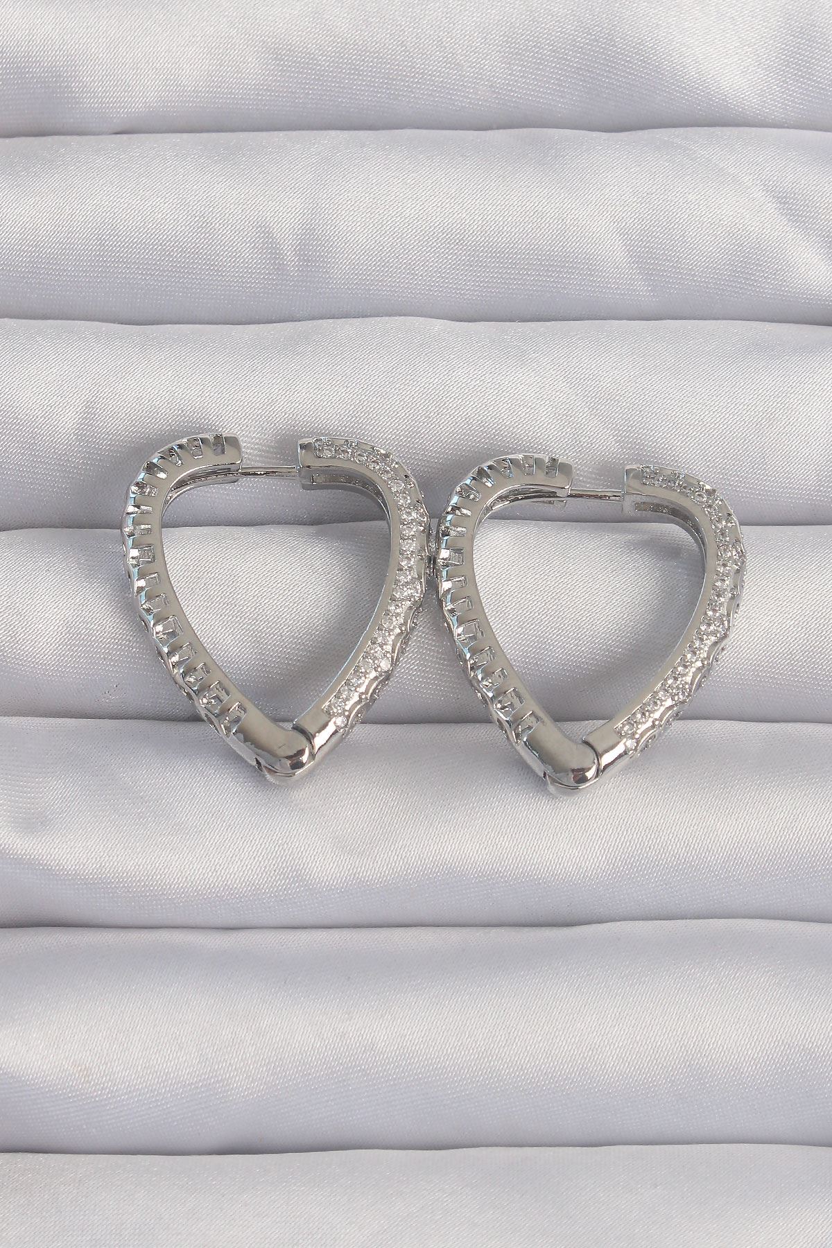 YRTCL Pirinç Gümüş Renk Zirkon Taşlı Motifli Kalp Küpe