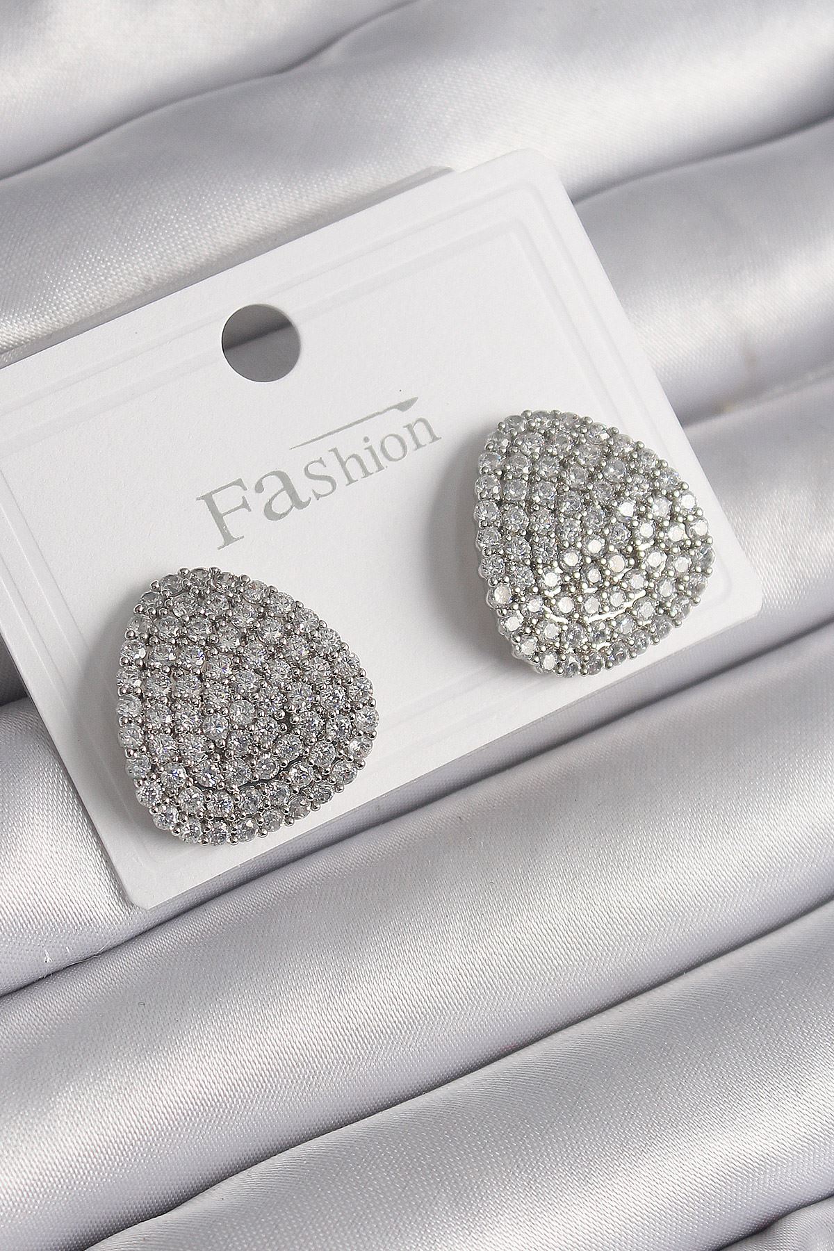 YRTCL Pirinç Gümüş Renk Zirkon Taşlı Plaka Model Kadın Küpe
