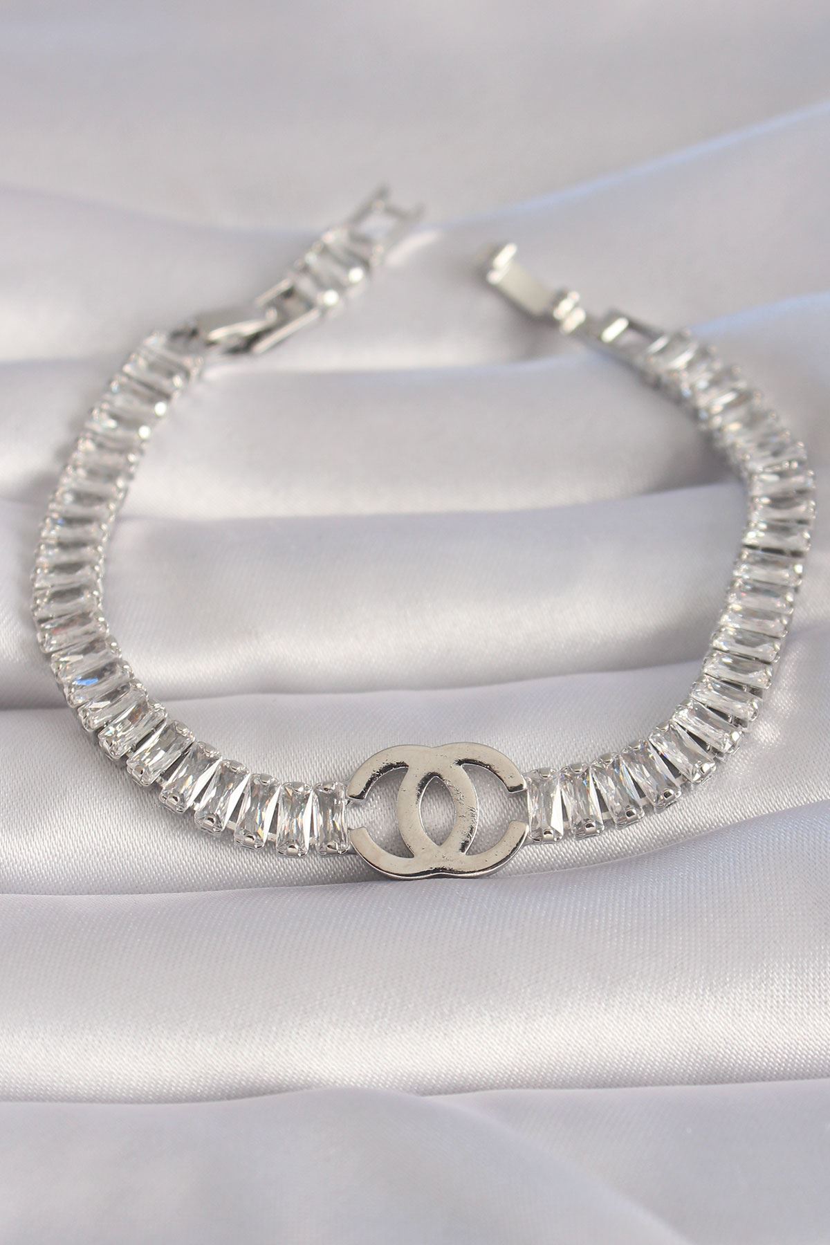 YRTCL Pirinç Gümüş Renk Zirkon Taşlı Su Yolu Model VIP Seri Kadın Bileklik