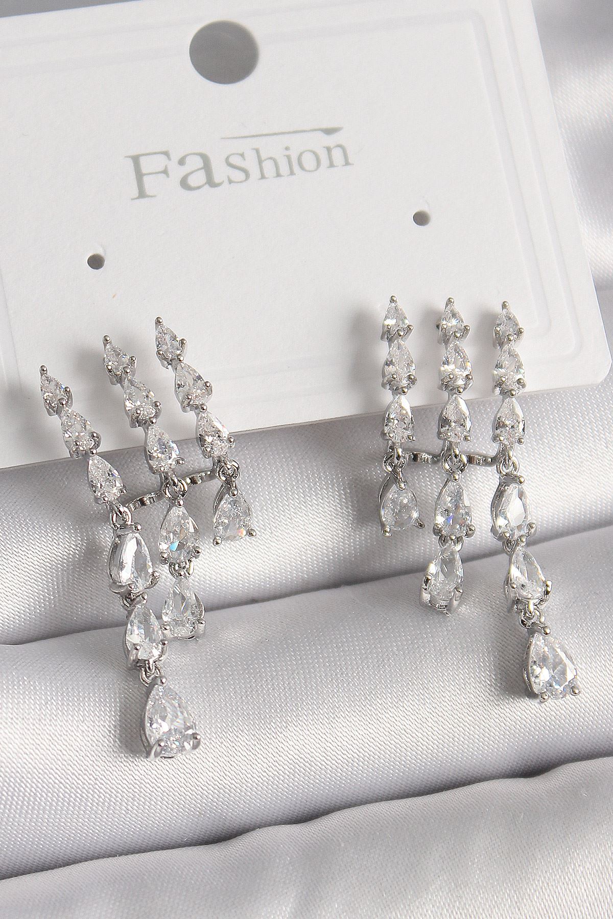 YRTCL Pirinç Zirkon Taşlı Çoklu Görünümlü Model Gümüş Renk Kadın Küpe