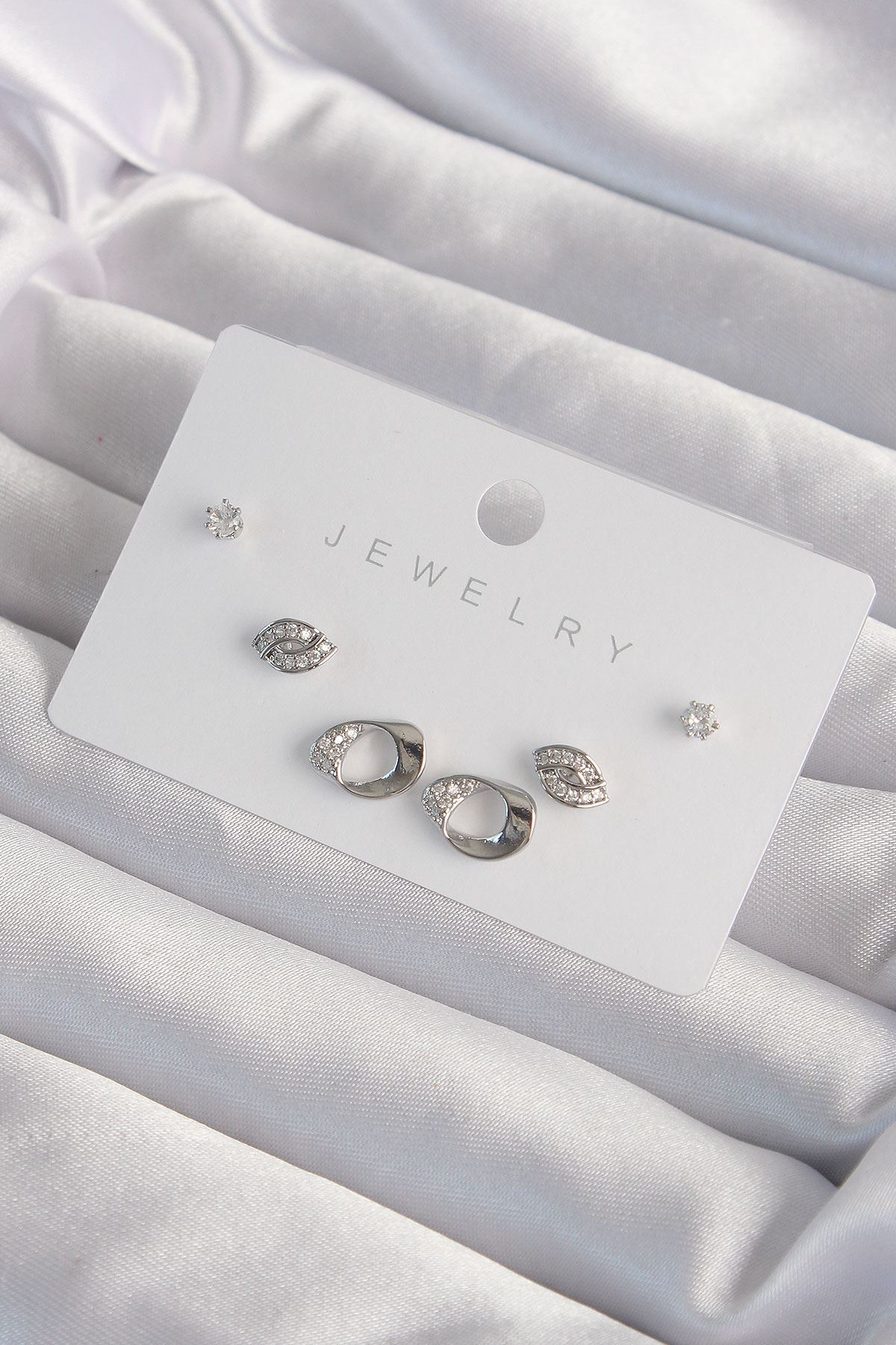 YRTCL Pirinç Gümüş Renk Zirkon Taşlı Yaprak Model Küpe Seti