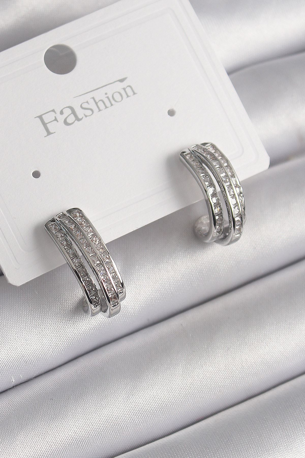 YRTCL Pirinç Gümüş Renk Zirkon Taşlı Yarım Halka Model Kadın Küpe
