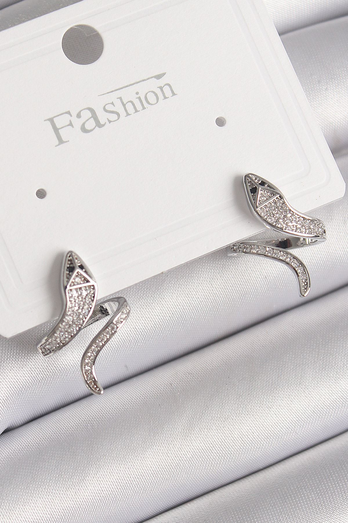 YRTCL Pirinç Gümüş Renk Zirkon Taşlı Yılan Model Kadın Küpe