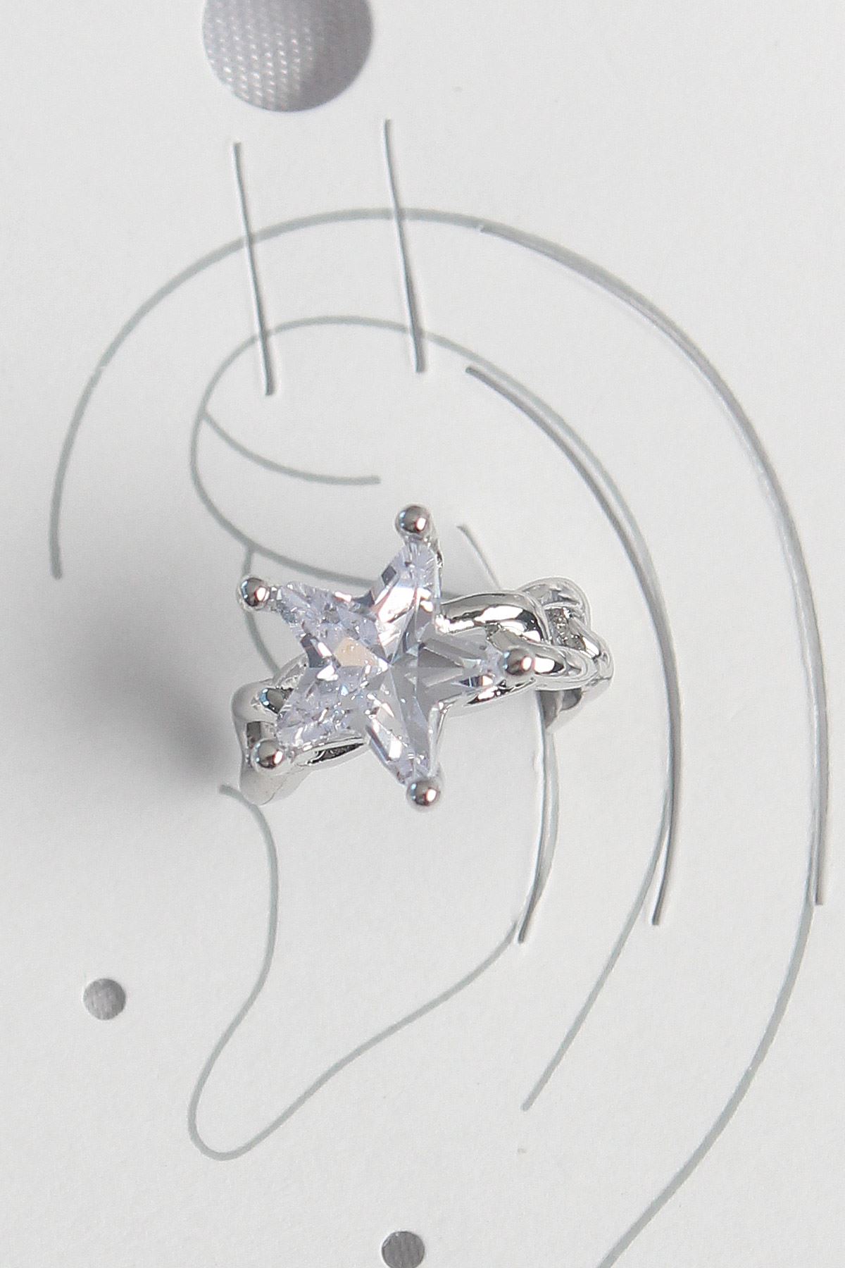 YRTCL Pirinç Gümüş Renk Zirkon Taşlı Yıldız Model Kadın Kıkırdak Küpe