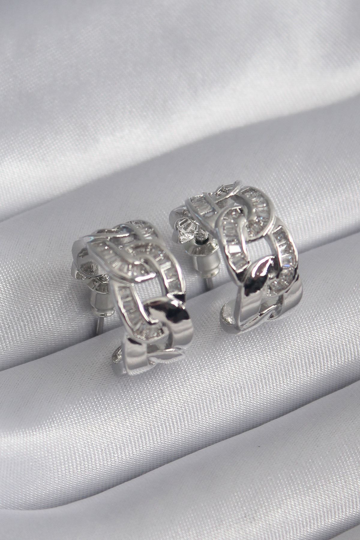 YRTCL Pirinç Gümüş Renk Zirkon Taşlı Zincir Model Kadın Küpe