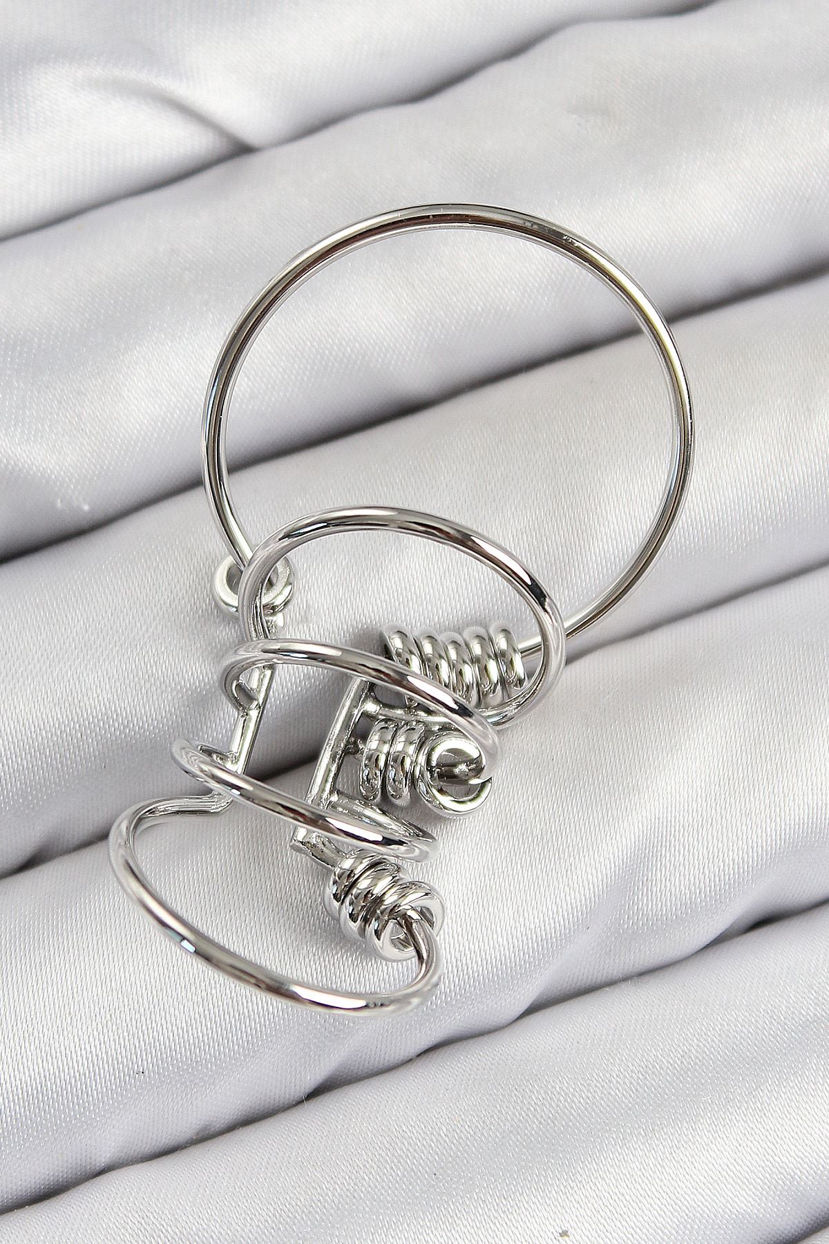 YRTCL Pirinç Halkalı Model Gümüş Renk Kıkırdak Küpe