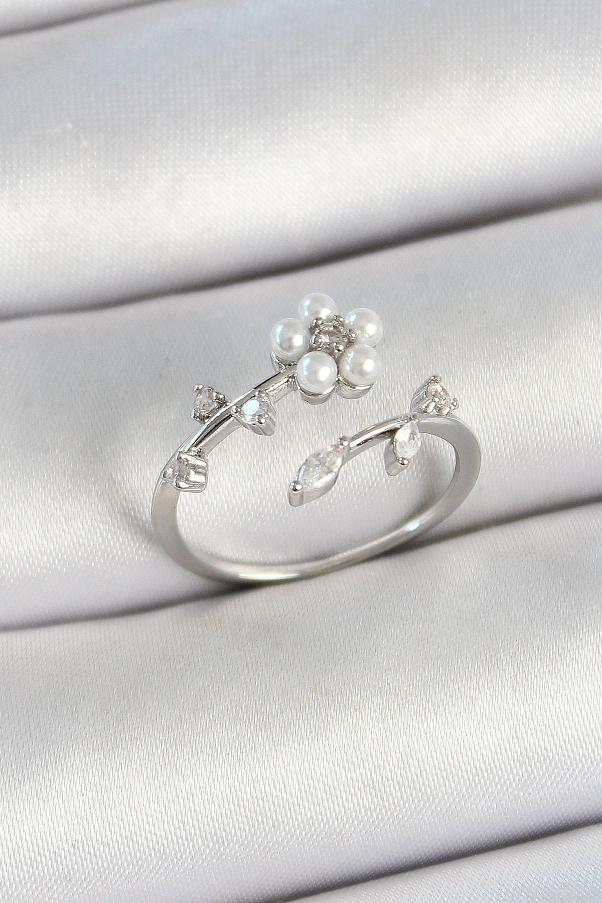 YRTCL Pirinç İnci Detaylı Papatya Figürlü Zirkon Taşlı Gümüş Renk Ayarlanabilir Kadın Yüzük