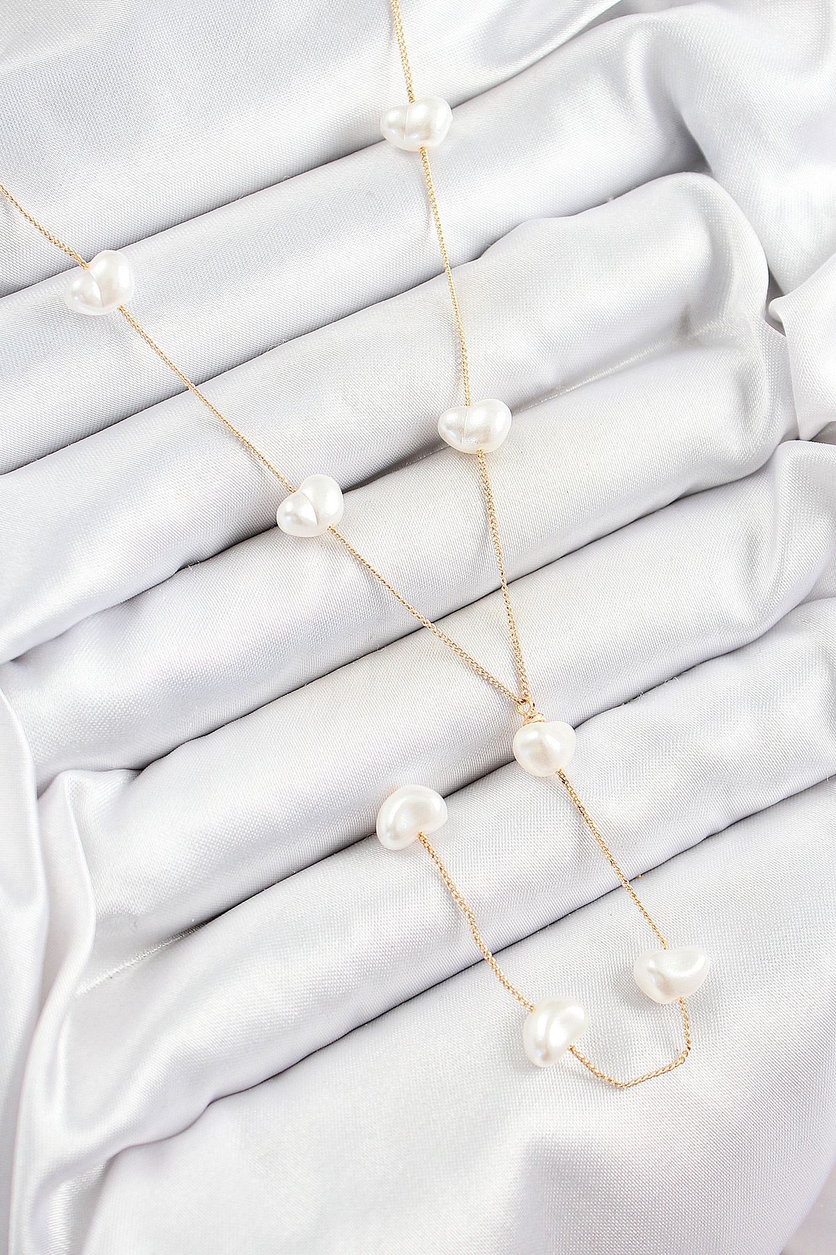 YRTCL Pirinç İncili Kalp Figürlü Y Model Gold Renk Kadın Kolye
