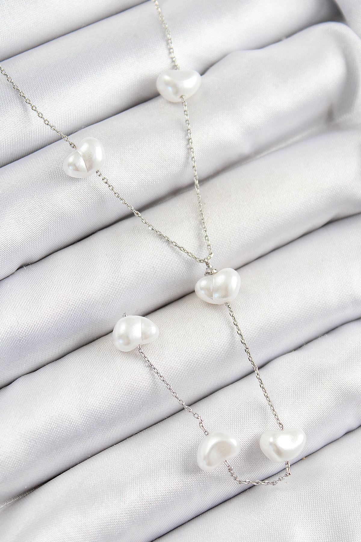 YRTCL Pirinç İncili Kalp Figürlü Y Model Gümüş Renk Kadın Kolye