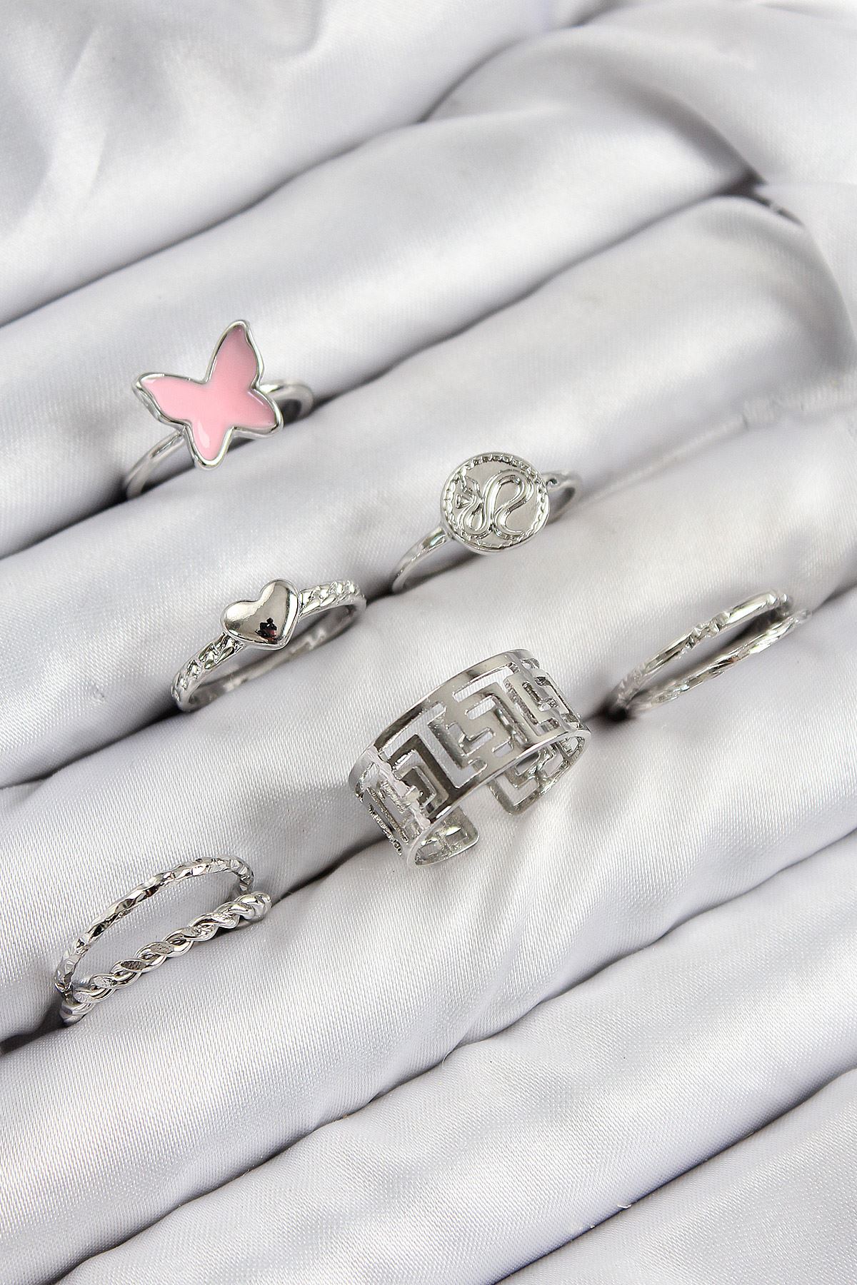 YRTCL Pirinç Kelebek Ve Kalp Model Gümüş Renk Kadın Yüzük Kombin Set