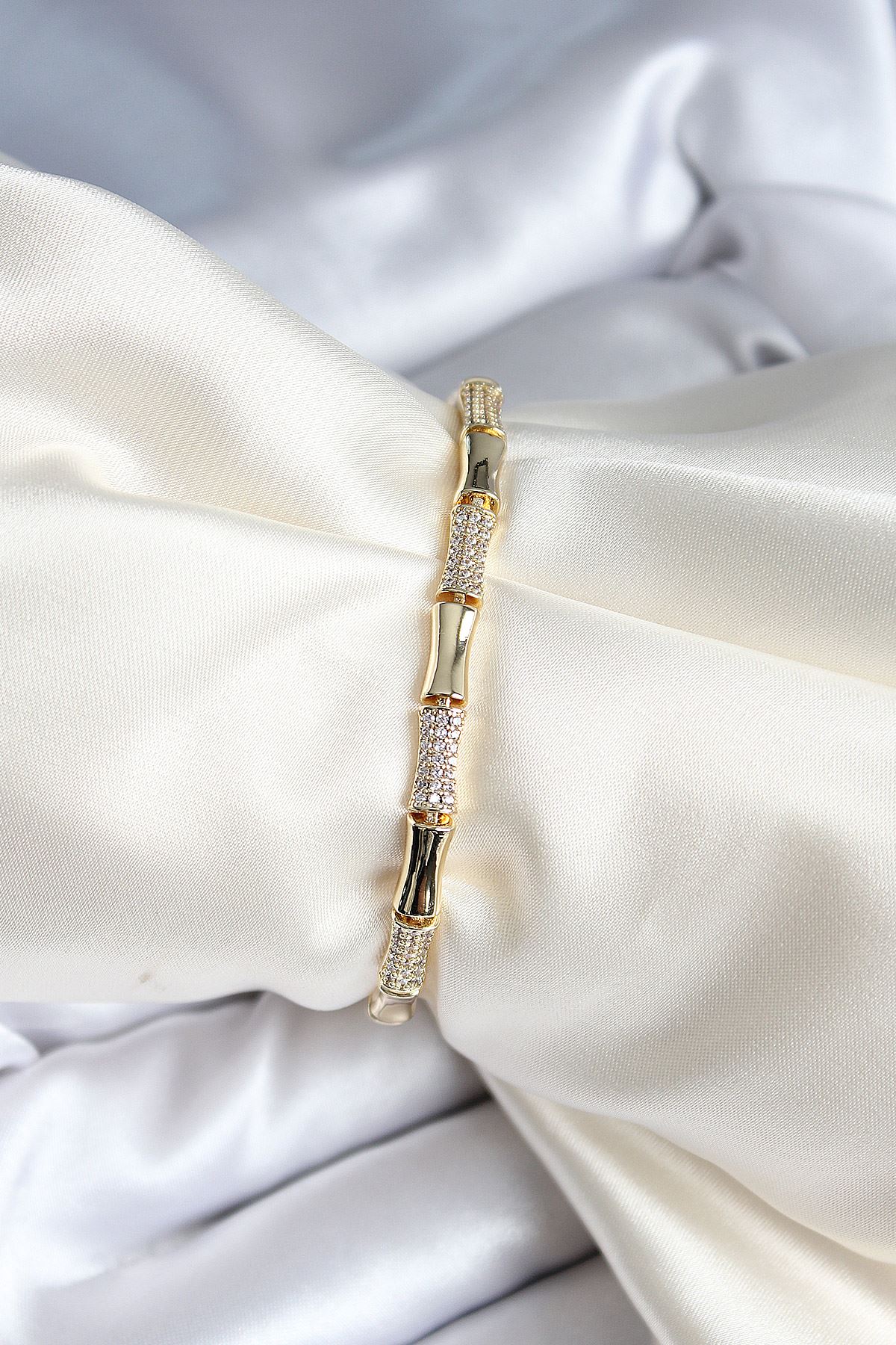 YRTCL Pirinç Kemik Model Zirkon Taşlı Gold Renk Kadın Bileklik