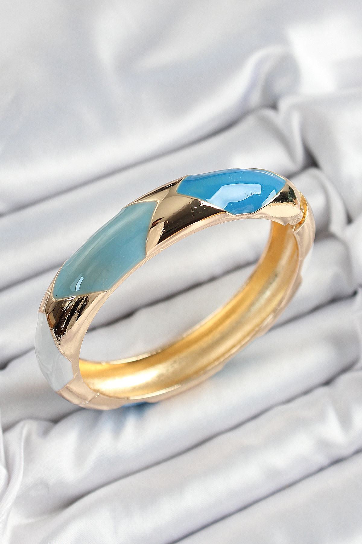 YRTCL Pirinç Mavi Beyaz Mineli Baklava Model Gold Renk Kadın Kelepçe
