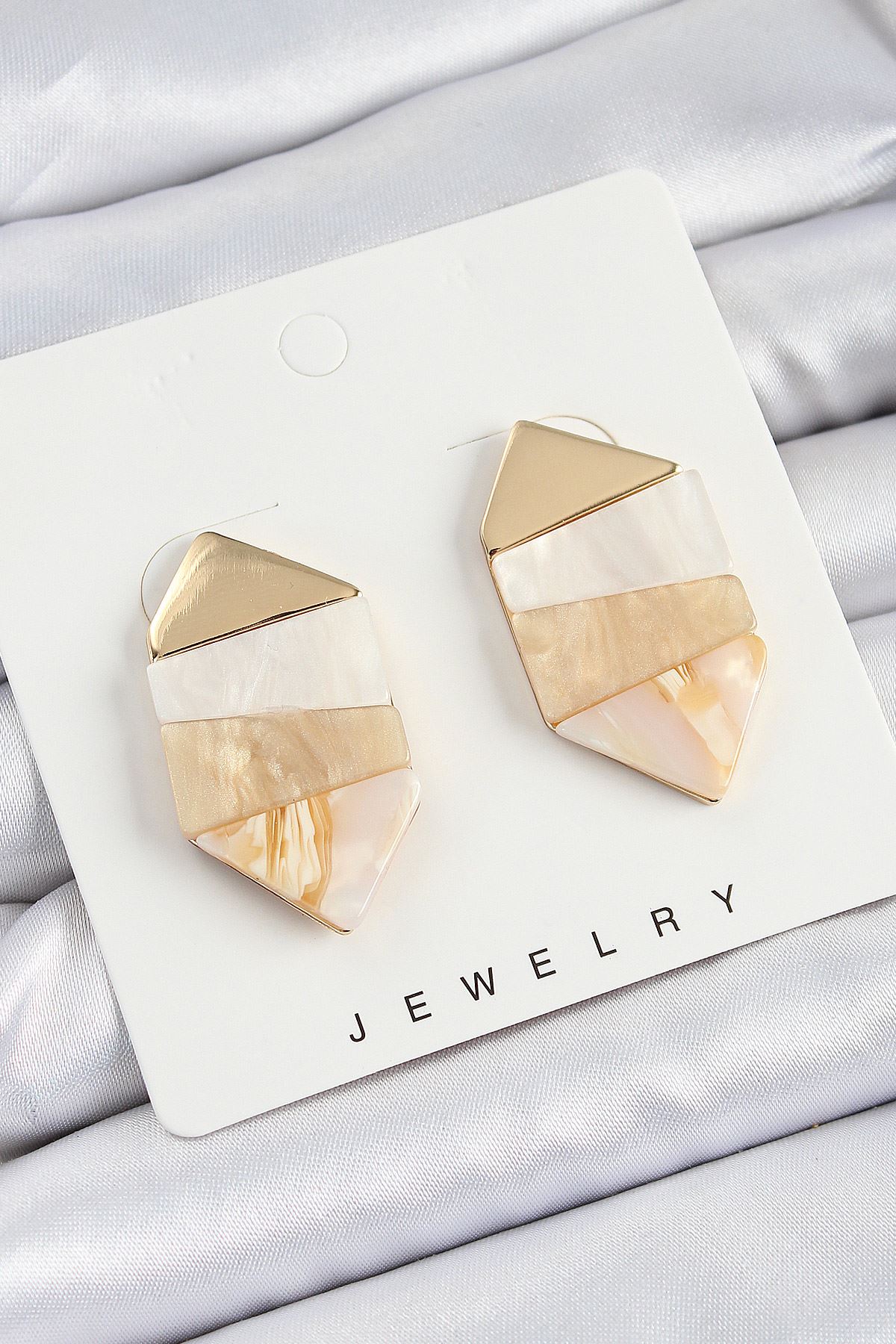 YRTCL Pirinç Mermer Desenli Vintage Geometrik Model Gold Renk Kadın Küpe