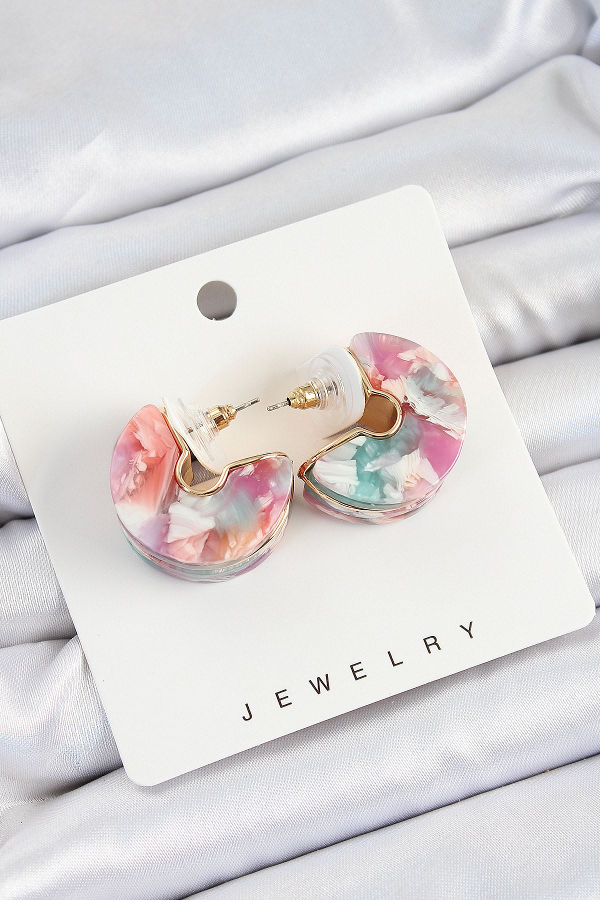 YRTCL Pirinç Mermer Desenli Vintage Yarım Halka Model Gold Renk Kadın Küpe