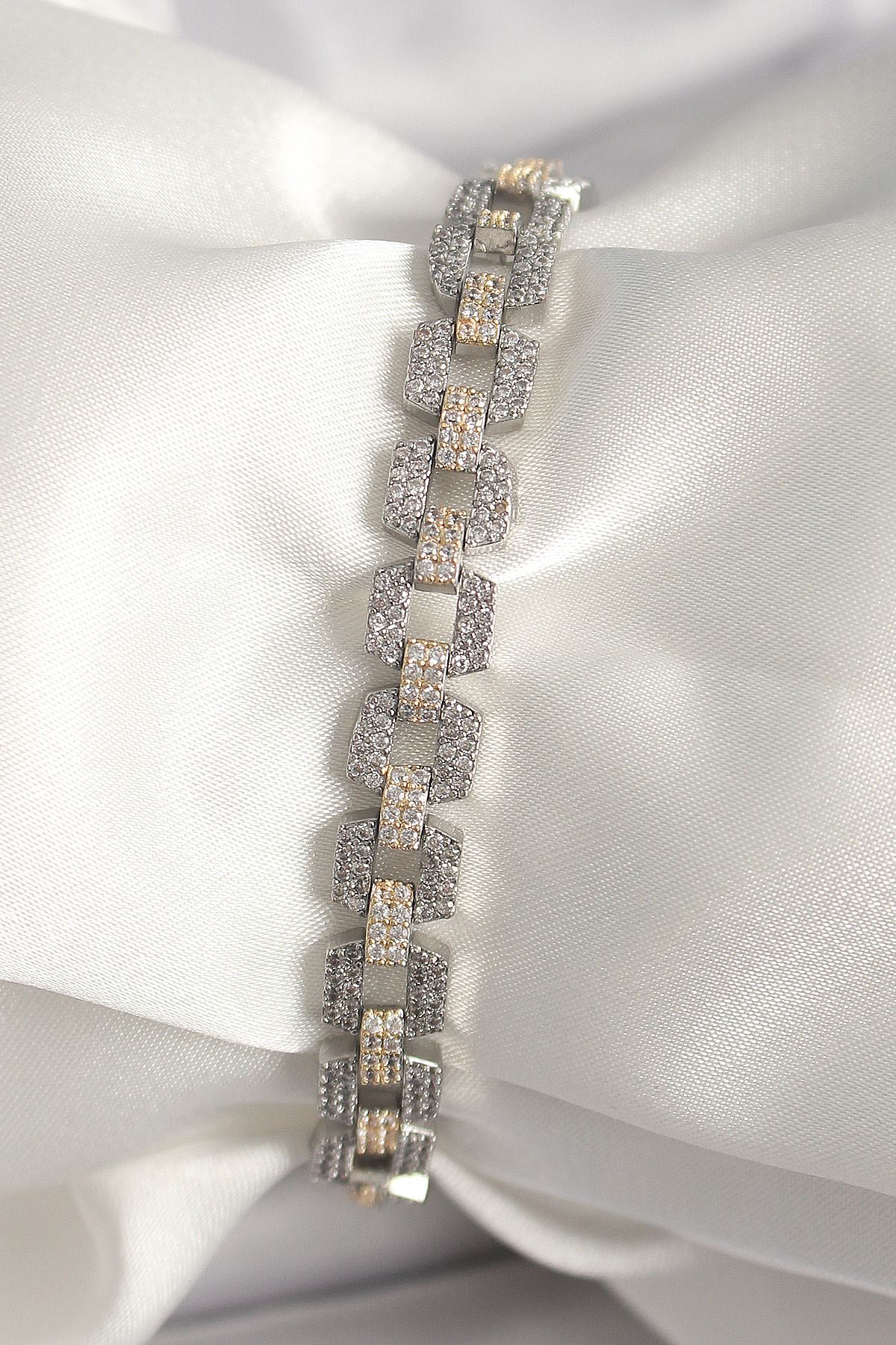 YRTCL Pirinç Mix Renk Zirkon Taşlı Zincir Model VIP Seri Kadın Bileklik