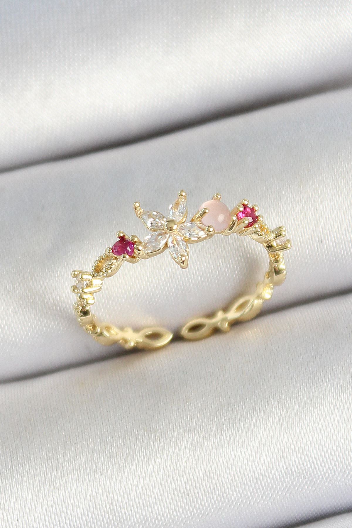 YRTCL Pirinç Papatya Figürlü Zirkon Taşlı Gold Renk Ayarlanabilir Kadın Yüzük