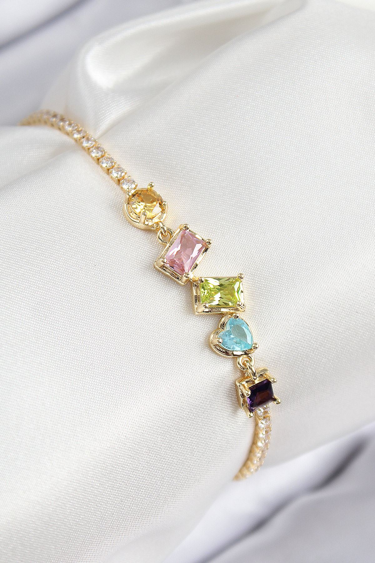 YRTCL Pirinç Renkli Zirkon Taşlı Geometrik Model Gold Renk Kadın Bileklik
