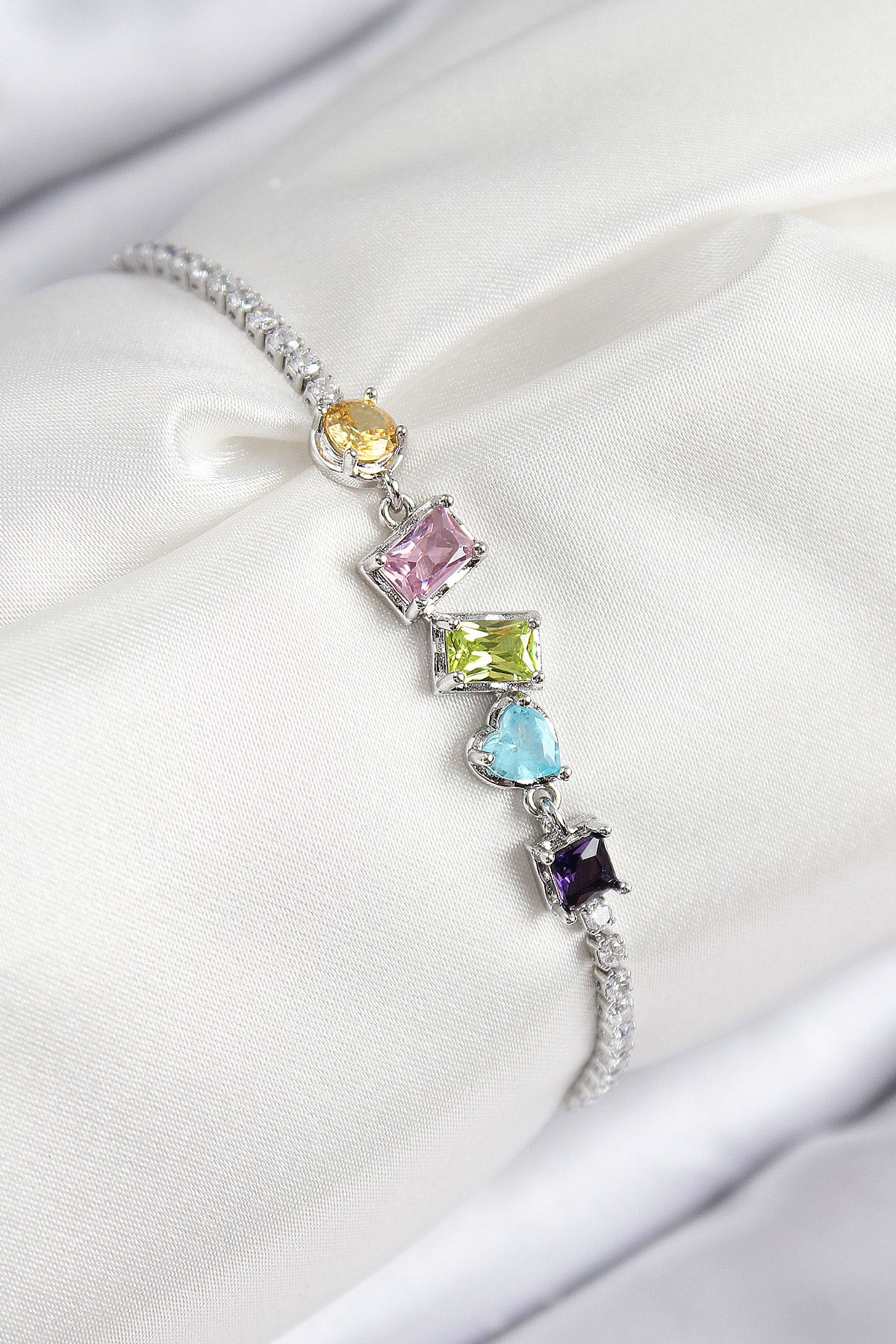 YRTCL Pirinç Renkli Zirkon Taşlı Geometrik Model Gümüş Renk Kadın Bileklik