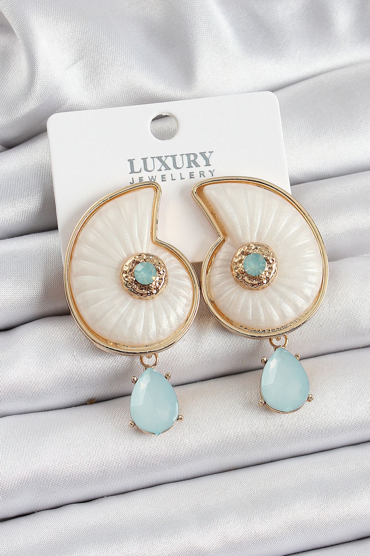 YRTCL Pirinç Sedef Deniz Kabuğu Figürlü Zirkon Taşlı Gold Renk Kadın Küpe