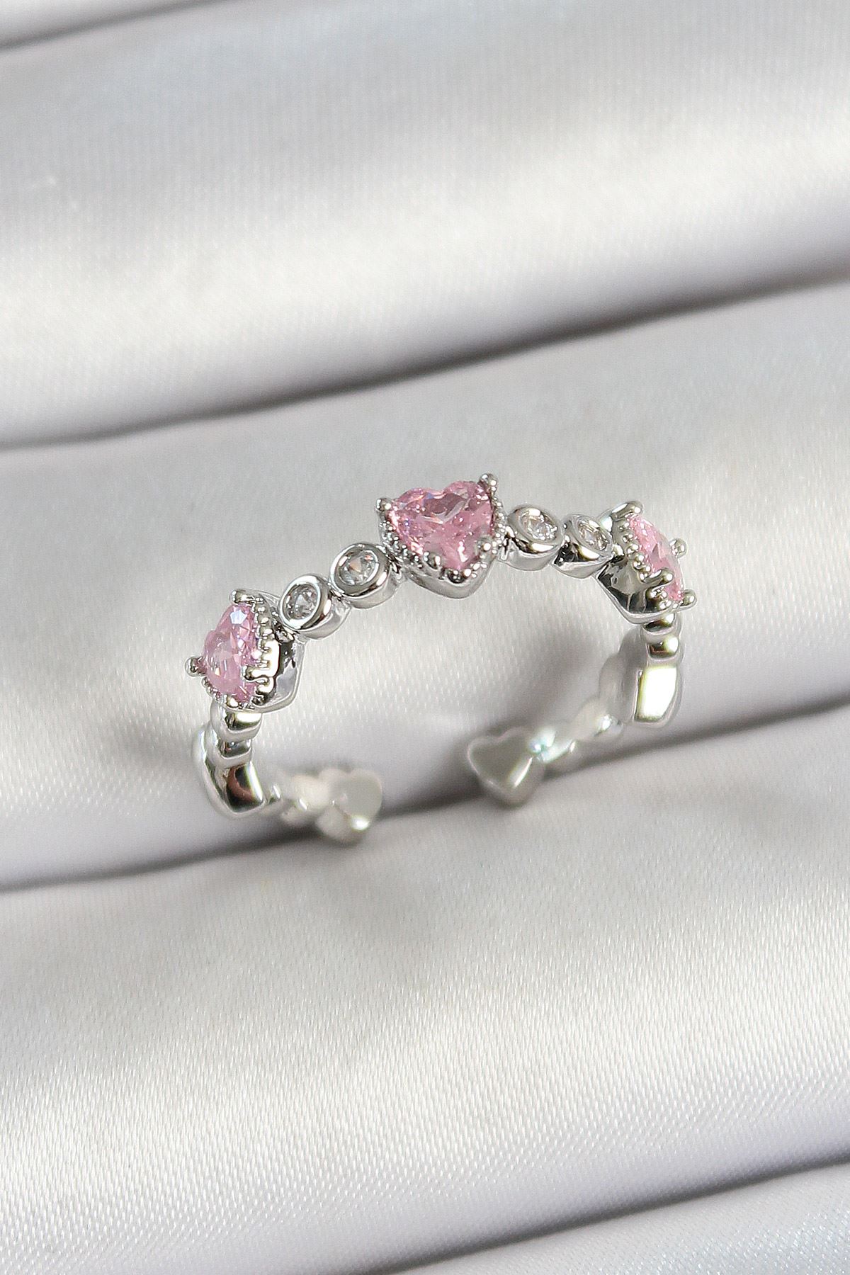 YRTCL Pirinç Gümüş Renk Pembe Damla Zirkon Taşlı Ayarlanabilir Model Kadın Yüzük