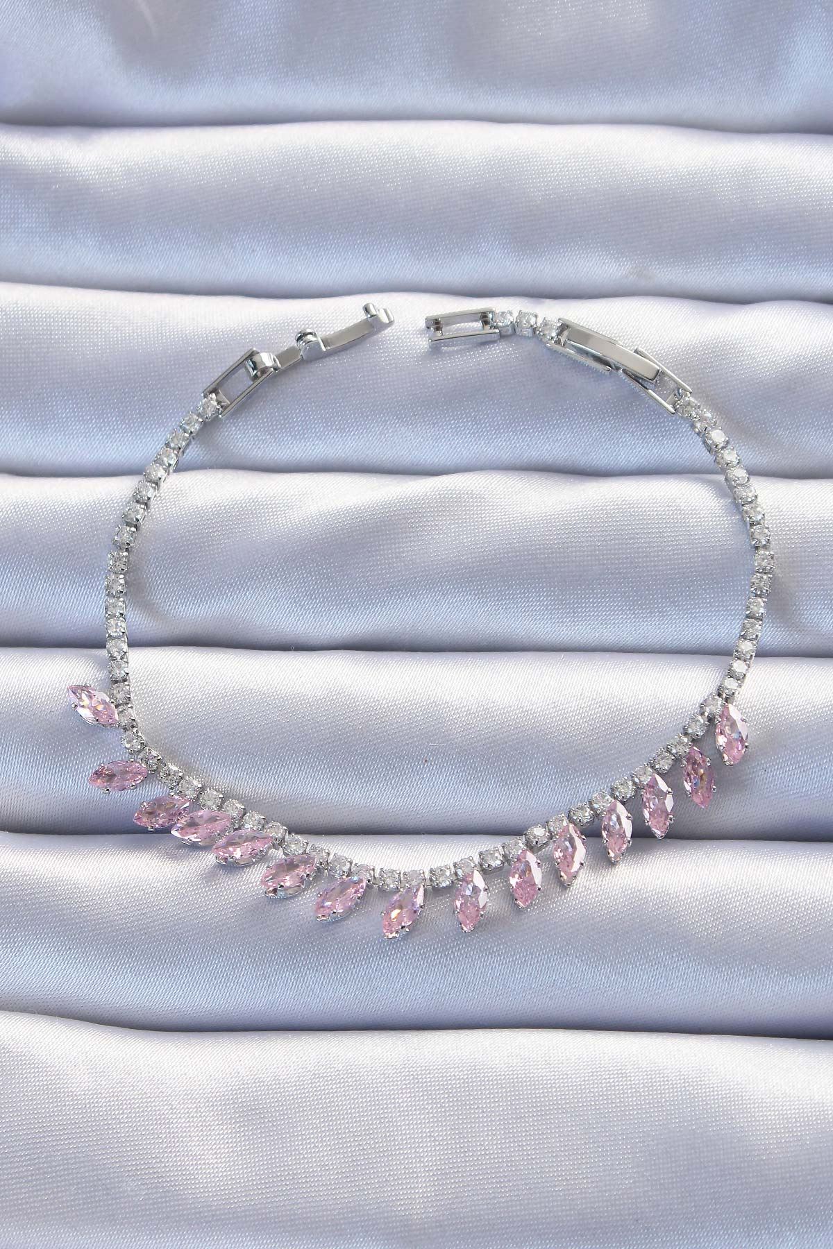 YRTCL Pirinç Vip Seri Gümüş Renk Pembe Zirkon Taşlı Bileklik