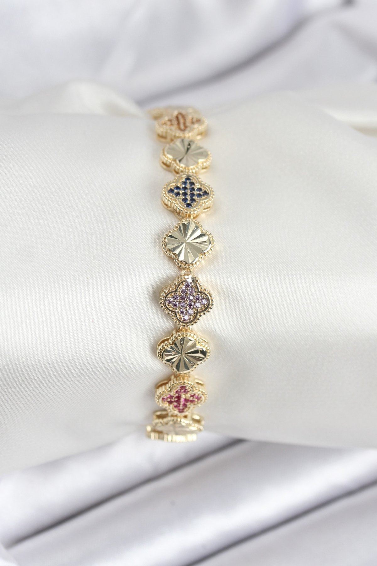 YRTCL Pirinç VIP Seri Yonca Zirkon Taşlı Kadın Bileklik