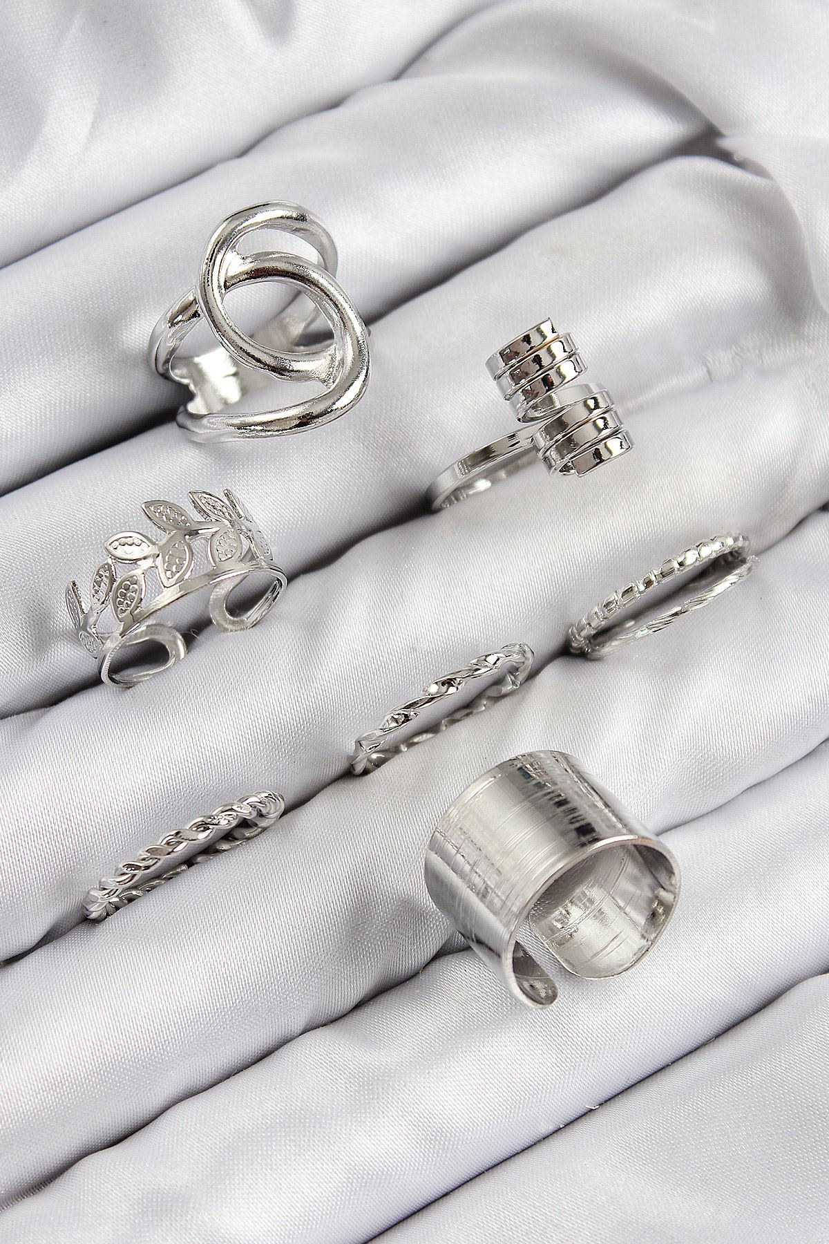 YRTCL Pirinç Yaprak Model Gümüş Renk Kadın Yüzük Kombin Set